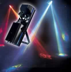 This uses 4 colored gobos sweep the air from left to right, while scrolling through 8 random gobos to the beat of the music.