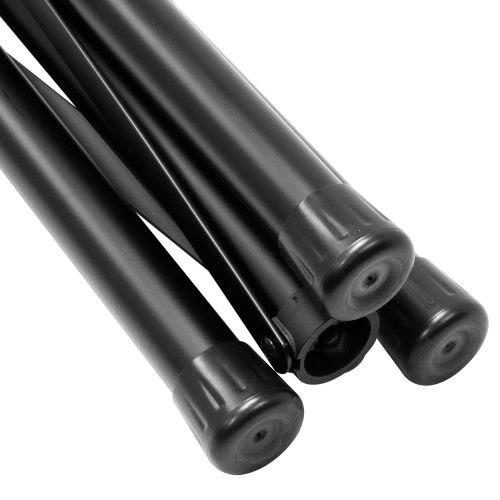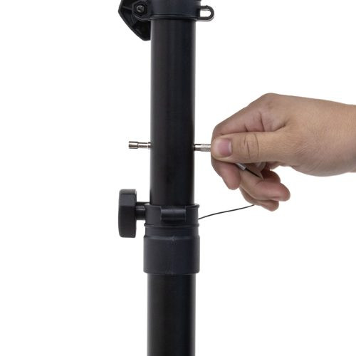 • Includes a safety pin to secure the tripod at different heights (45", 51", 57", 63", from the ground to the tray at maximum leg span)