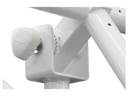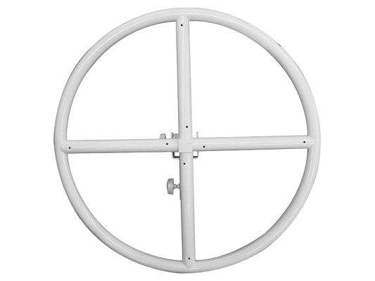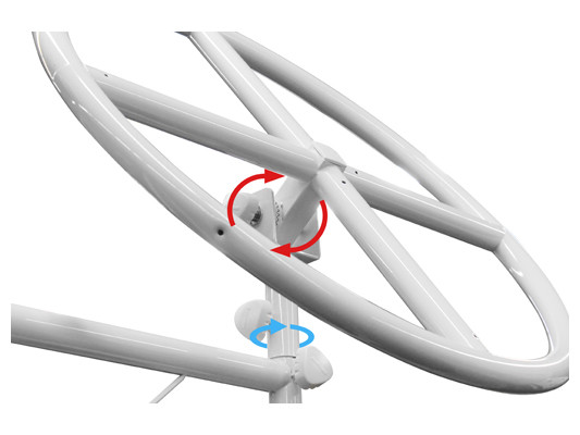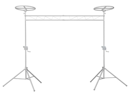 • Breaks Down into 6 Pieces: Two Aluminum/Steel Crank-Up Tripods, Two 5' Long Truss I-beams, and Two 30" Diameter Adjustable Halo Attachments.