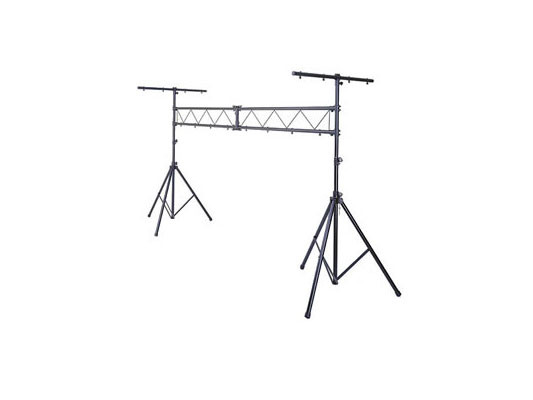 • 2 black aluminum tripods which extends to 9ft, 2-5 foot truss I beams when connected have a 10 foot span and 2 T-bars.