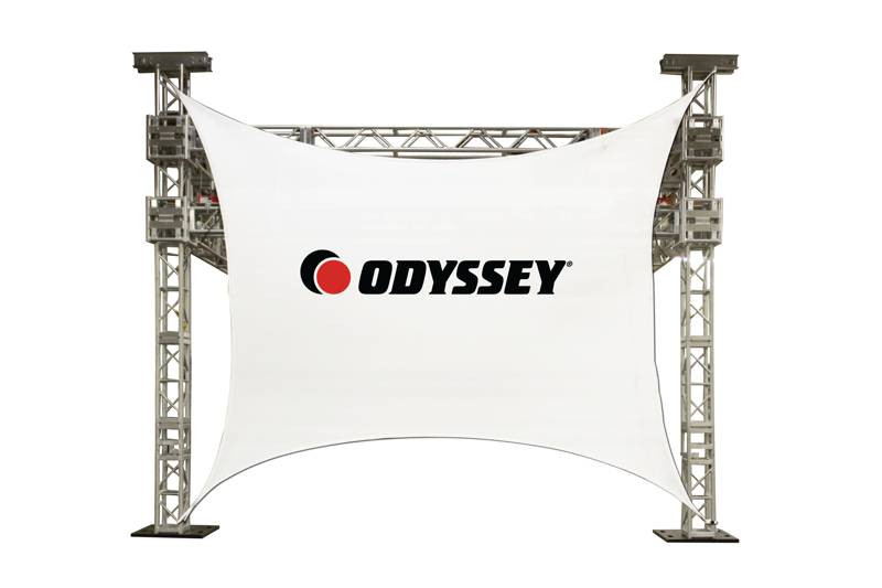 Designed for large indoor and outdoor venue applications, the Odyssey Scrim Werks' LTMVSCRN2XLG has 12 sewn in loop points to stretch and secure into various shapes and sizes. Besides video projection, the LTMVSCRN2XLG can also be used for a variety of other application from unique outdoor shading attached onto a truss frame or other temporary structures to indoor theatrical or banquet backdrops with colored lighting effects *(use all necessary safety precautions when using heat and electrical related devices near the stretch screen).