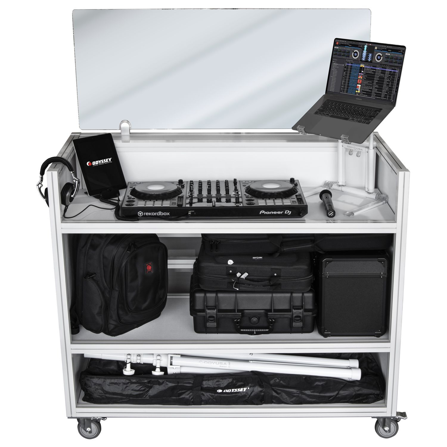 Club Vibe Inspired. Mobile DJ Designed. The Majestic DJ Booth is an all-in-one, roll-in/out mobile DJ system. Its unique design enables an entire mobile DJ system, from gear to connections, to be safely and securely left setup, plugged-in and ready to go, while being transported from gig to gig.
