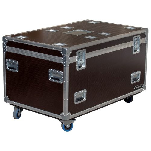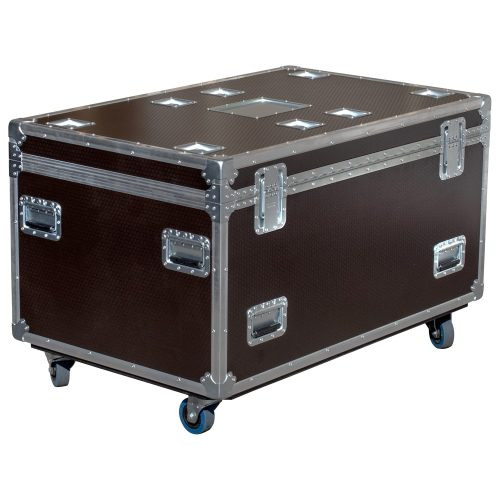 The high-performance Odyssey Professional Flight Ready utility tour trunk case is made of 1/2" wood thickness with laminated hexagonal pattern. The case has low profile square corners and four 5" tall casters (4" diameter wheels) with two of the casters having the brake.