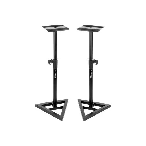 Odyssey SPKSTANDSM46 is a pair of sturdy studio monitor stands with a steel triangular base providing stability and well-fitting into the corner of a room. The locking pin on the stands ensure monitor positioning at the right height.