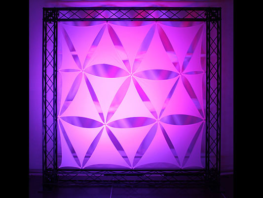 Introducing a new addition to Odyssey's extraordinary line of Scrim Werks' products. Take your DJ services to the next level a step up above your competition with Odyssey's Dcor Panels'. Create an attractive and innovative Dcor Panel' display for your DJ booth background. It's a brilliant way of differentiating yourself from the crowds of DJs out there and getting those high end gigs with high returns. Use them for decorative, lighting, and projection applications for banquets, photo booth and stage backdrops. With various available shapes and sizes your possibilities are endless. For a complete effect we recommend that panels are used in conjunction with LED lighting or gobo projection lighting. Dcor Panels are available for purchase in bundled packages of complete wall pattern displays ideal for use with our optional Nexus Truss Decor Panel' Frames.