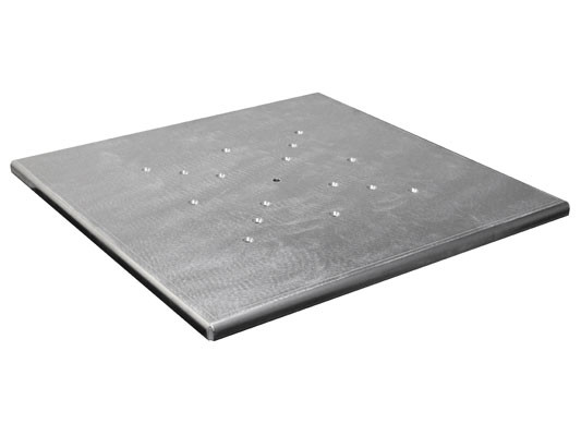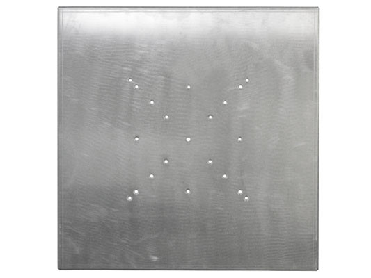 Customize and change up your Scrim Werks' Light Column setups with individual Light Column parts. The SWLCBP36 aluminum plate comes is larger than the standard plates included in the 1-10 ft. Light Column packages. Use this 36"x36" base plate to give extra vertical stability to taller Columns when needed. It Features multiple bolt holes for diverse Column pole configurations, and a center bolt hole for securing lights or attaching the SWLCSPKSTUD Light Column speaker stud adapter. Hole configurations are compatible with other Column plates (SWLCBP17, SWLCBP24, and SELCB30).