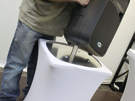 Introduce more diversity to your special event set-ups. Secure your speakers by mounting them on top of Odyssey Scrim Werks' Light Columns with the convenient SWLCSPKSTUD Light Column Speaker Stud. It easily attaches to the plate of any one of the 1' to 10' high columns. Just another way to elevate your decor as well as your speakers.