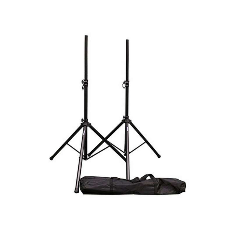 The TI-SS5012C Speaker Stand Pack comes with two speaker stands and carrying bag for easy transport. Each stand holds up to 100 lbs. and extends to a height of up to 6 ft. Each tripods also features folding legs and non-slip rubber feet.