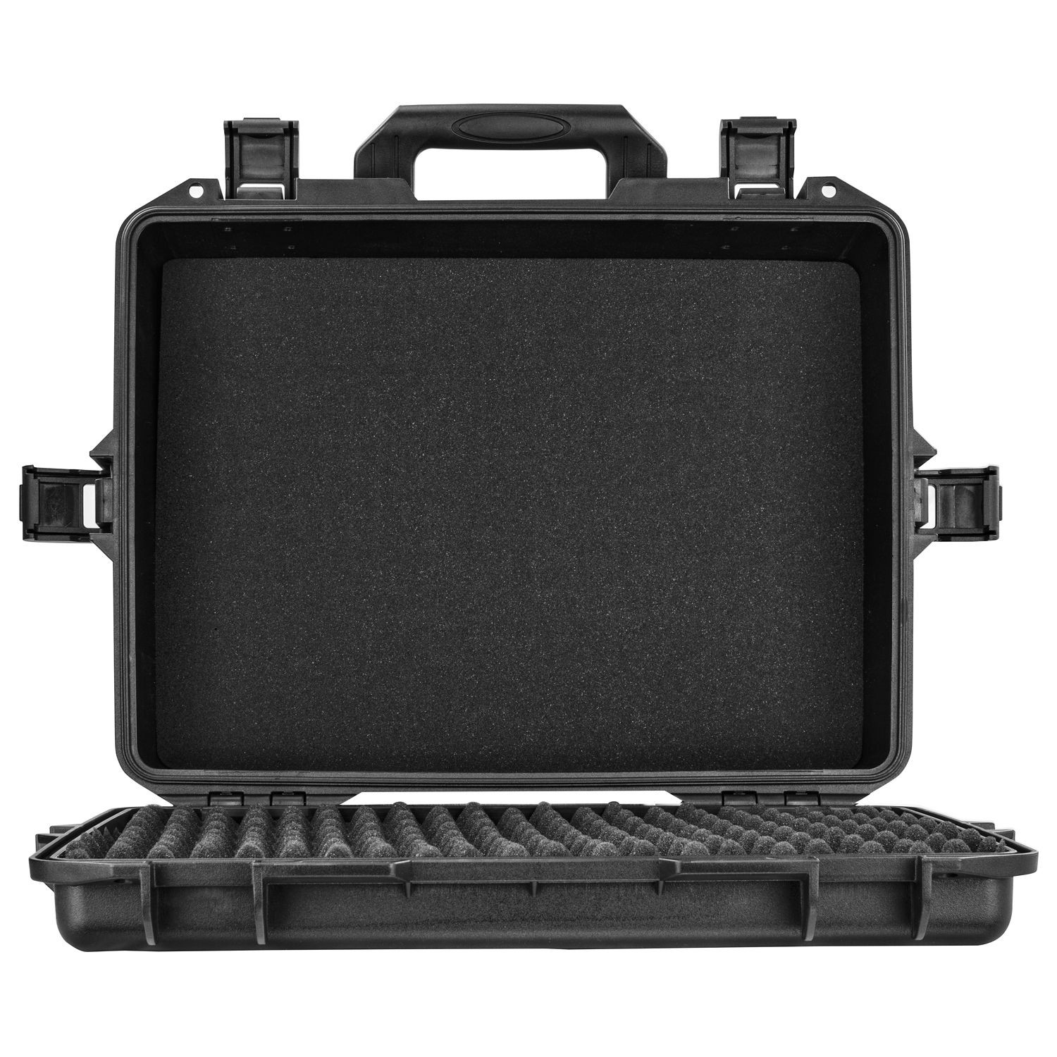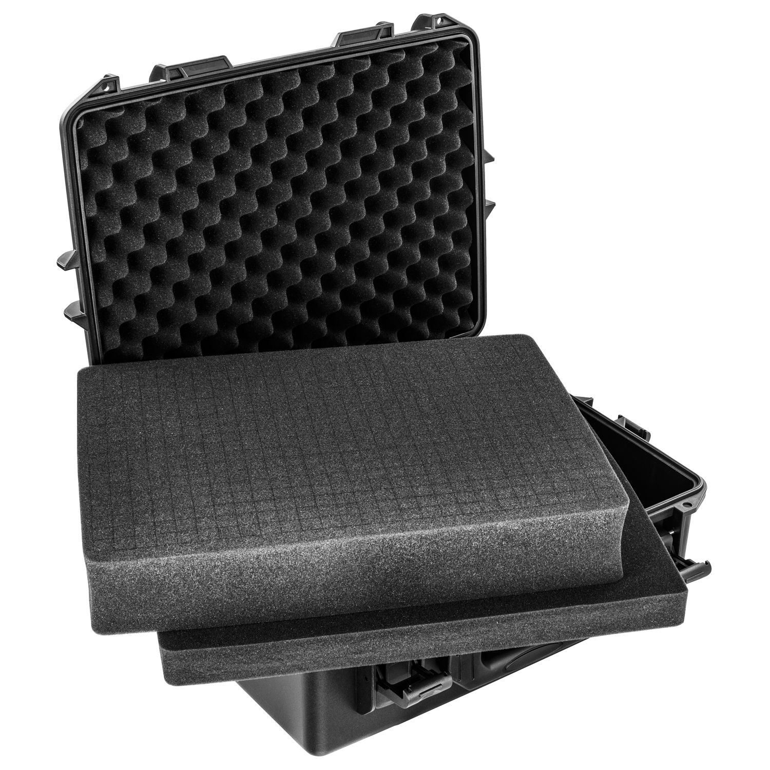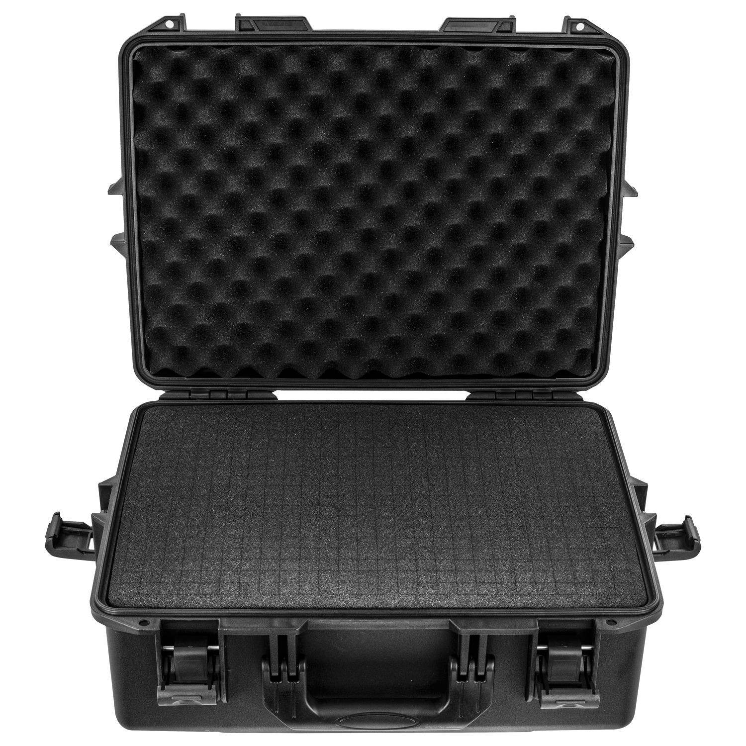 Our polymer plastic watertight, dust-proof and impact resistant injection molded cases are made of a high strength polymer resin which provides the ultimate protection for your gear. The VU191408 features a soft convoluted egg foam-lined lid interior and a bottom section layered with diced pluck foam sheets that can easily be customized to fit your gear and accessories. Standard features include a comfortable carrying handle, a pressure release valve, and padlock holes.