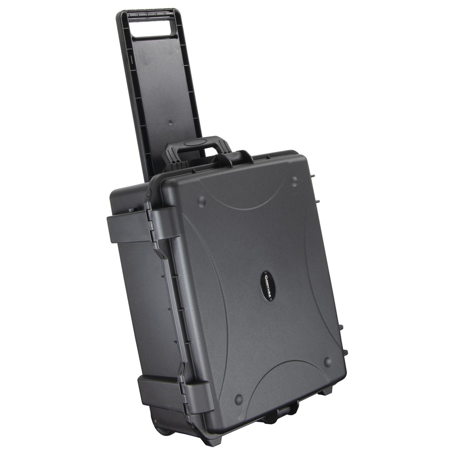 Our polymer plastic watertight, dust-proof and impact resistant injection molded cases are made of a high strength polymer resin which provides the ultimate protection for your gear. The VU191408HW features a fully foamed interior as well as corner wheels and a pullout handle for transport convenience. The lid has a soft convoluted egg foam-lined interior, and the bottom section is layered with diced pluck foam sheets that can easily be customized to fit your gear and accessories. Standard Features include a comfortable carrying handle, a pressure release valve, and padlock loops.