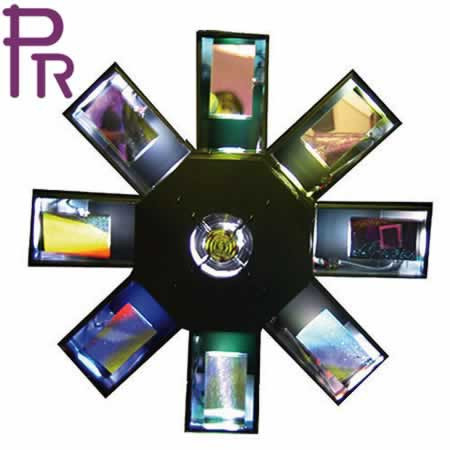 Spectacular centerpiece that washes any venue with 8 razor-sharp beams which also create "flower" effects. Can be installed vertically or horizontally.