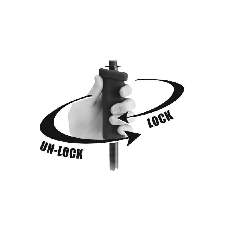 Same as MS7255, with a pistol grip clutch on the top of the stand for one handed height adjustments. Use only one hand to adjust the height or unscrew your clip! The anti-rotation feature means never holding the lower shaft to prevent loosening from the base. Oversized threading means it takes only seconds to assemble or disassemble this stand! Just turn the shaft clockwise to lock, and simply step on the foot pedal and turn counter-clockwise to release.