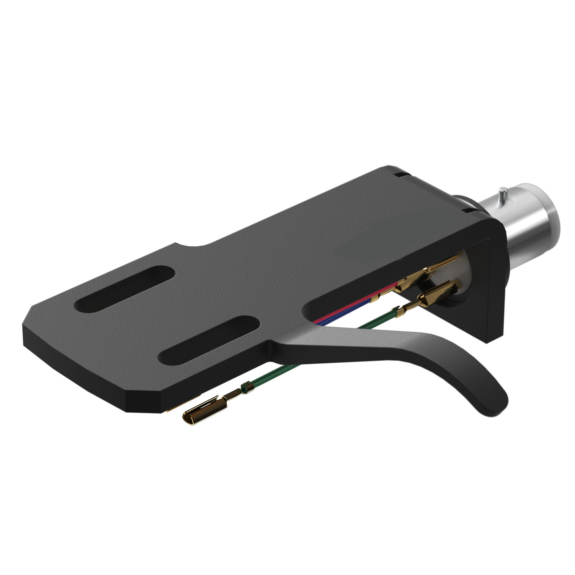 This all-black SH-4 headshell has an ergonomic design with a long finger that is easy to pick-up. The big finger grip and shorter construction makes movement and placement of the headshell easy and visible. The wire terminals on the rear side are also gold plated for better signal transmission.