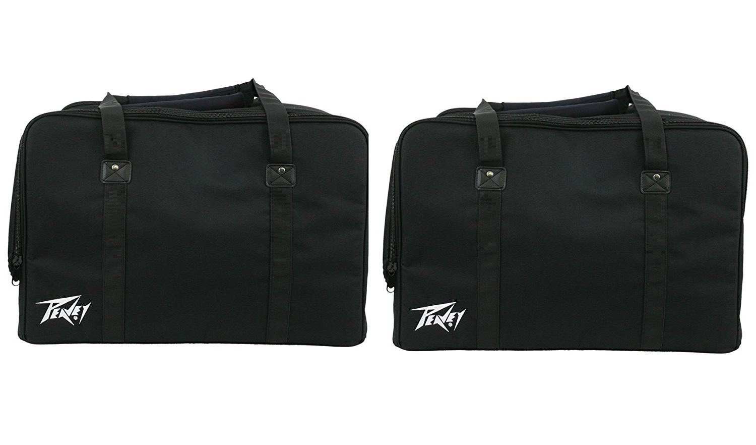 A pair of durable carrying bags for DM112, RBN112, PVX12, and PVXp12 speaker cabinets. Duffel bag-style padded carrying handles. Speaker cabinet can also be carried by speaker side handles covered by a Velcro-closure flap to protect speaker during transport.
