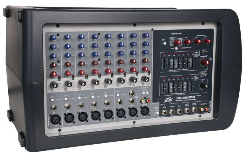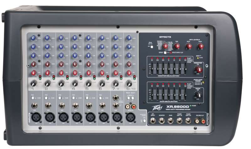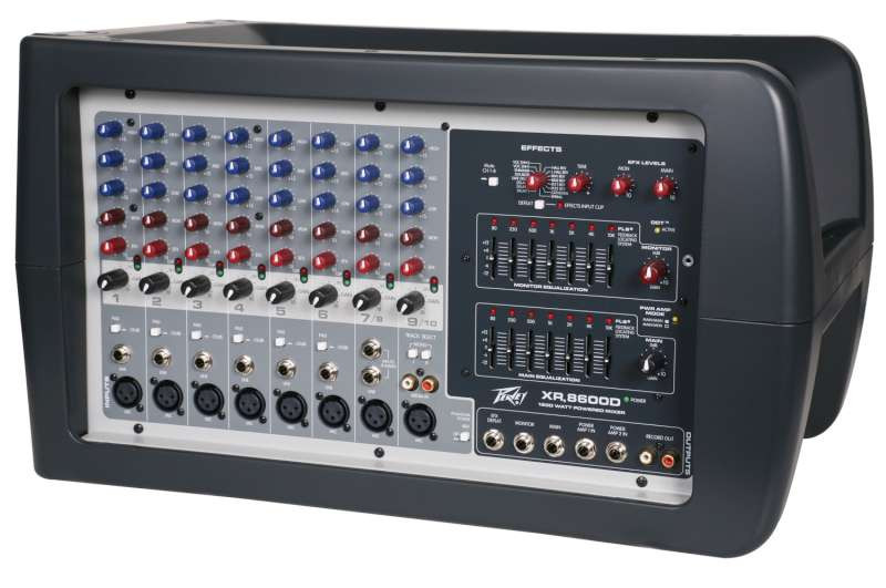 The XR8600D features eight ultra-low-noise mic preamps and ten line inputs, with 16 built-in DSP effects, monitor send and effects send on each channel, 7-band graphic EQ with patented FLS Feedback Locating System and two 600-watt power amps that can run in parallel in Dual Main mode-making the full 1,200 watts available to the main output-or used independently in Main/Monitor mode.