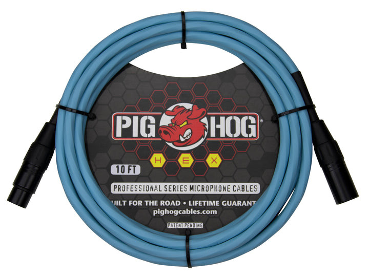 Pig Hog PHMH10DB Hex Series Microphone Cable, Daphne Blue, 10ft XLR