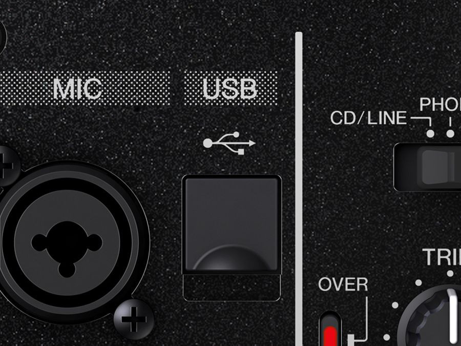 • USB port, located on top of the mixer, enables quick connection of devices.