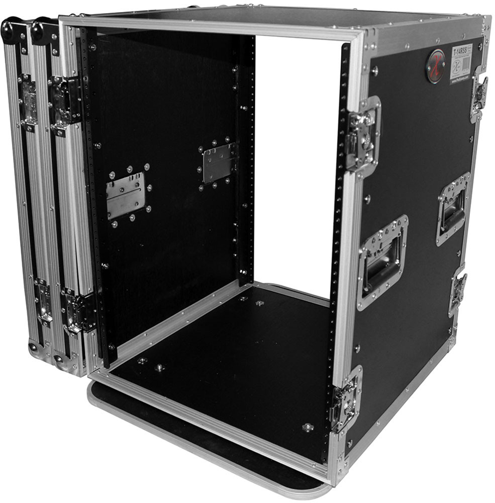 The T-14RSS 14 Space 14U vertical amplifier rack case is the perfect storage solution for convenient security for a wide variety of amplifiers, pro DJ mixers, effects and any other standard 19" rack-mountable pro audio/DJ/Network gear. Built with a heavy-duty construction design and dual mounting rails your equipment won't dislodge or slip, and strain on the rack ears will be minimized. These professional-grade products also include external spring-loaded handles and butterfly twist latches with included padlocks for added security. The rubber feet at the base will ensure maximum stability when stacking multiple units. As part of ProX Cases Signature Series line of products, the T-14RSS case is assembled with thicker 3/8" plywood for premium protection. In addition to the heavy duty design and convenient features of the T-14RSS, this case is coated with a beautiful black finish giving you a stylish, durable, and dependable product that will last a lifetime.