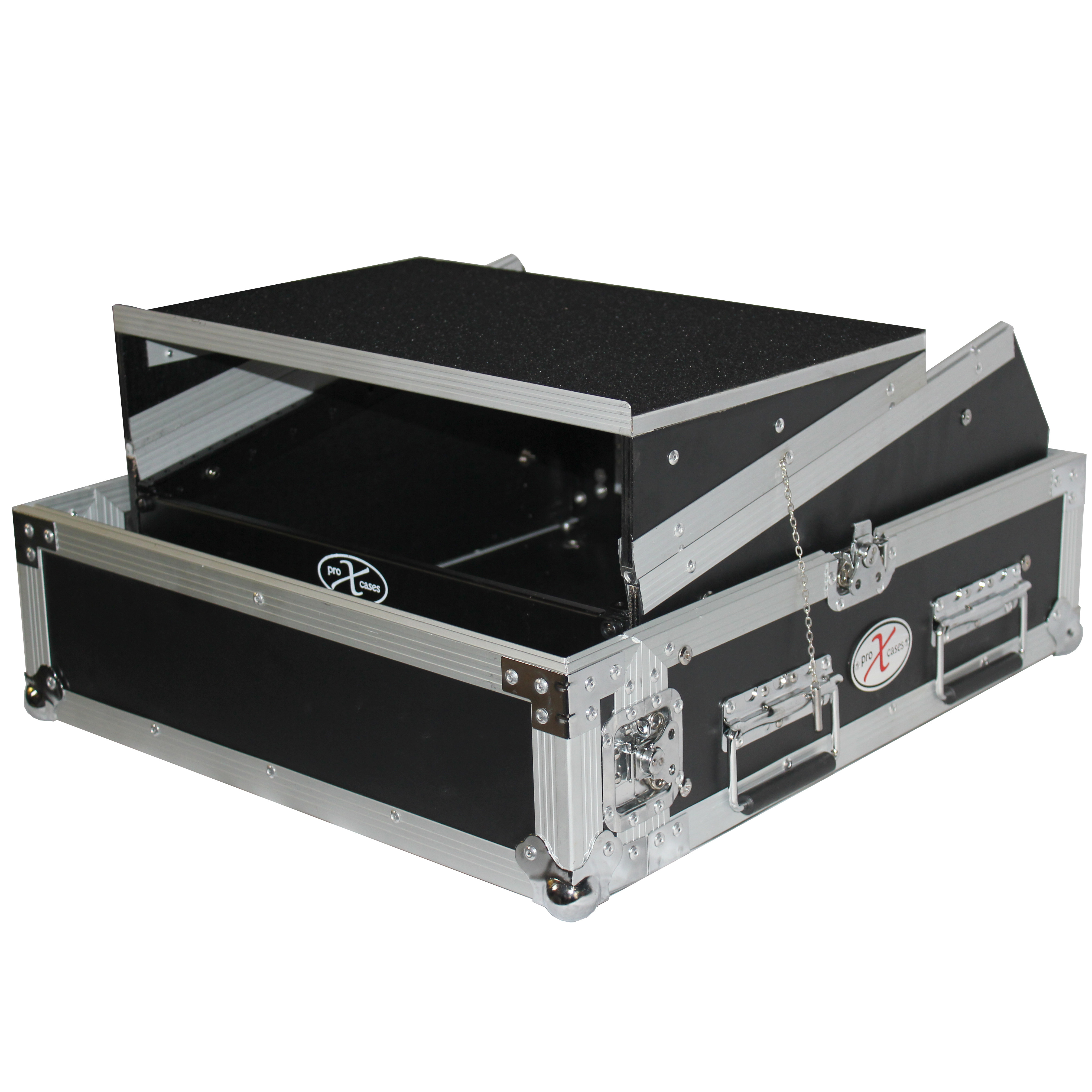 This heavy-duty ProX professional combo rack is 20" deep and features 2U front loading and 10U top loading rails for convenient security for a wide variety of pro DJ mixers. Other design highlights include a large swinging rear door (for easy wiring) with a beveled cable hole for permanent or semi-permanent installation. It also includes two handles on either side of the case for convenient transportation.