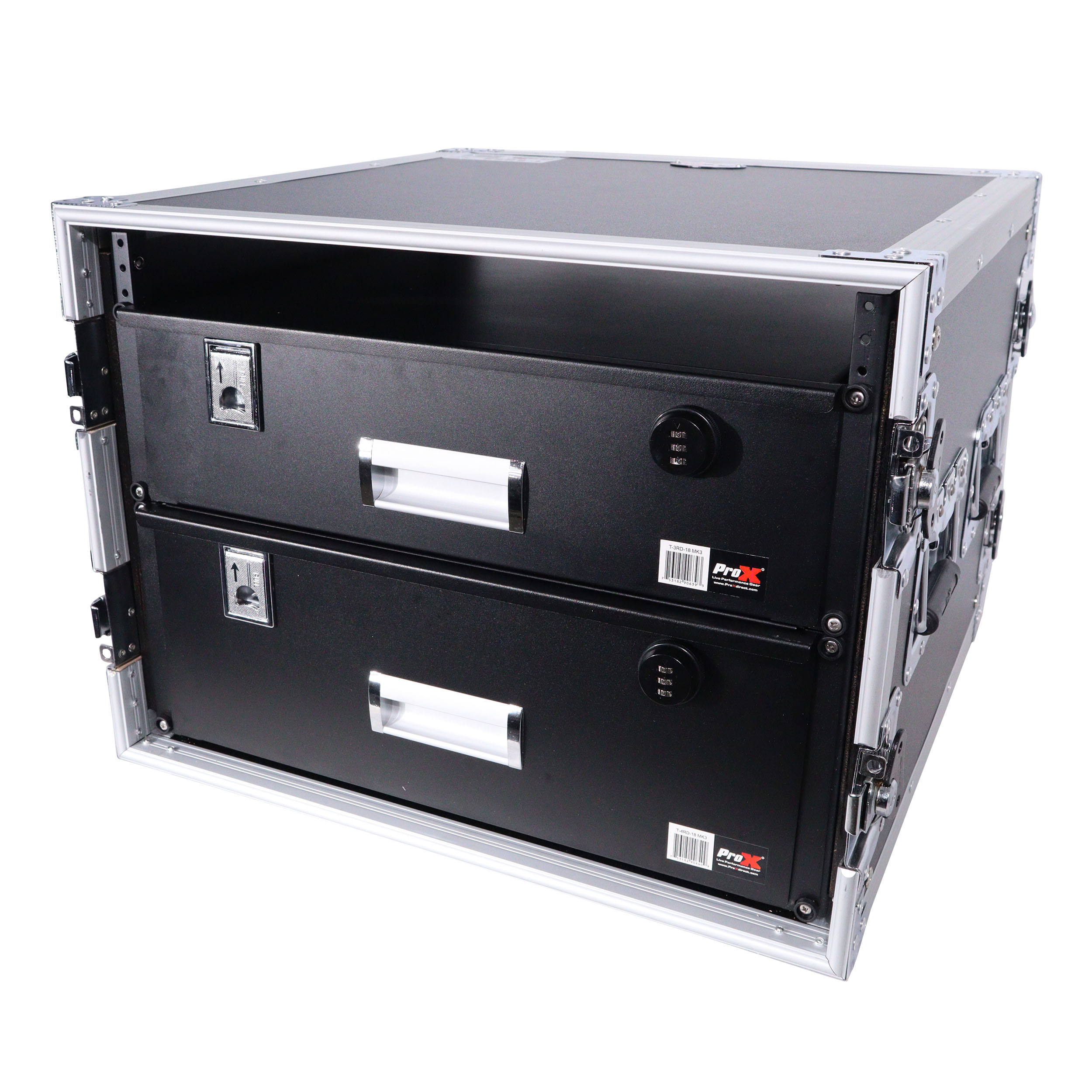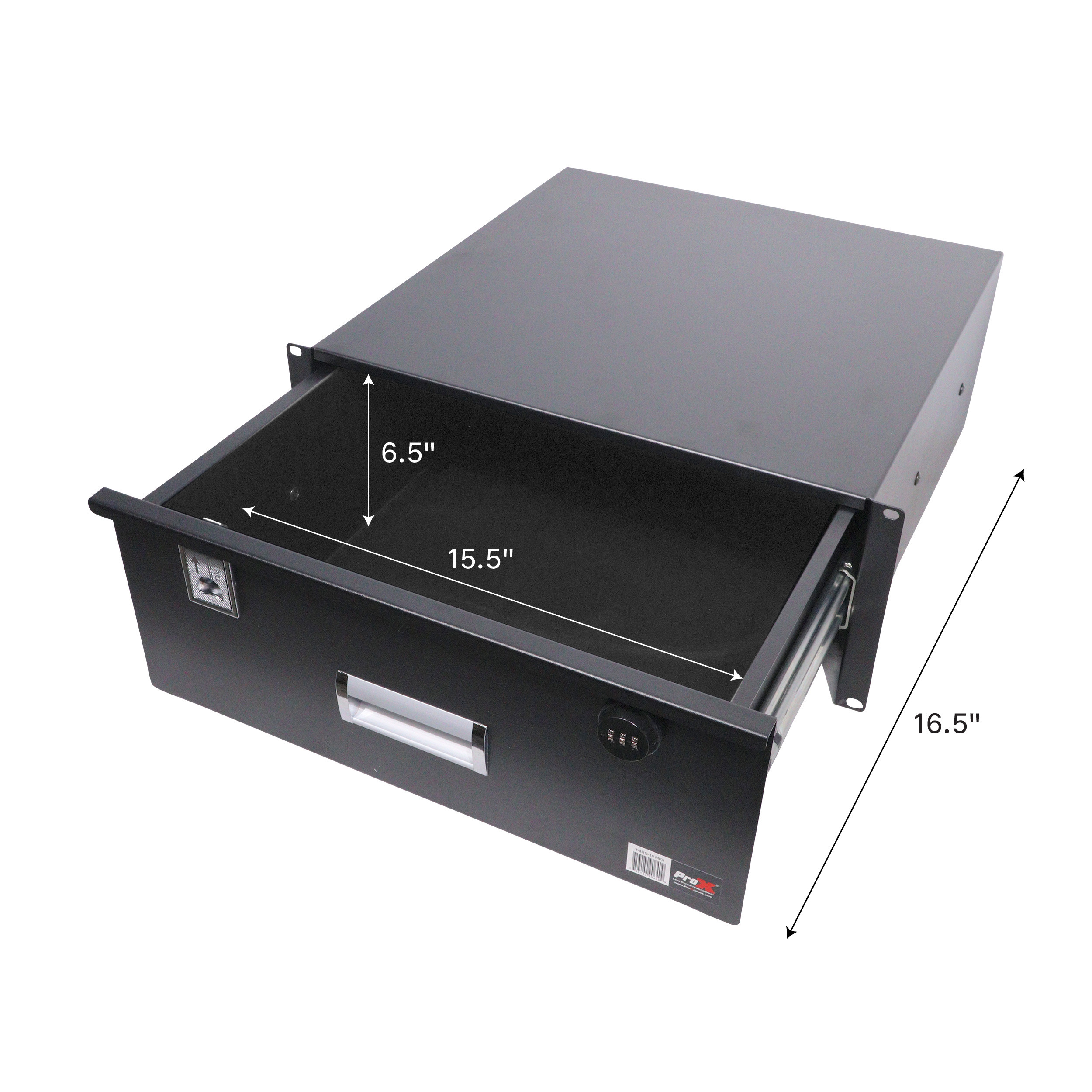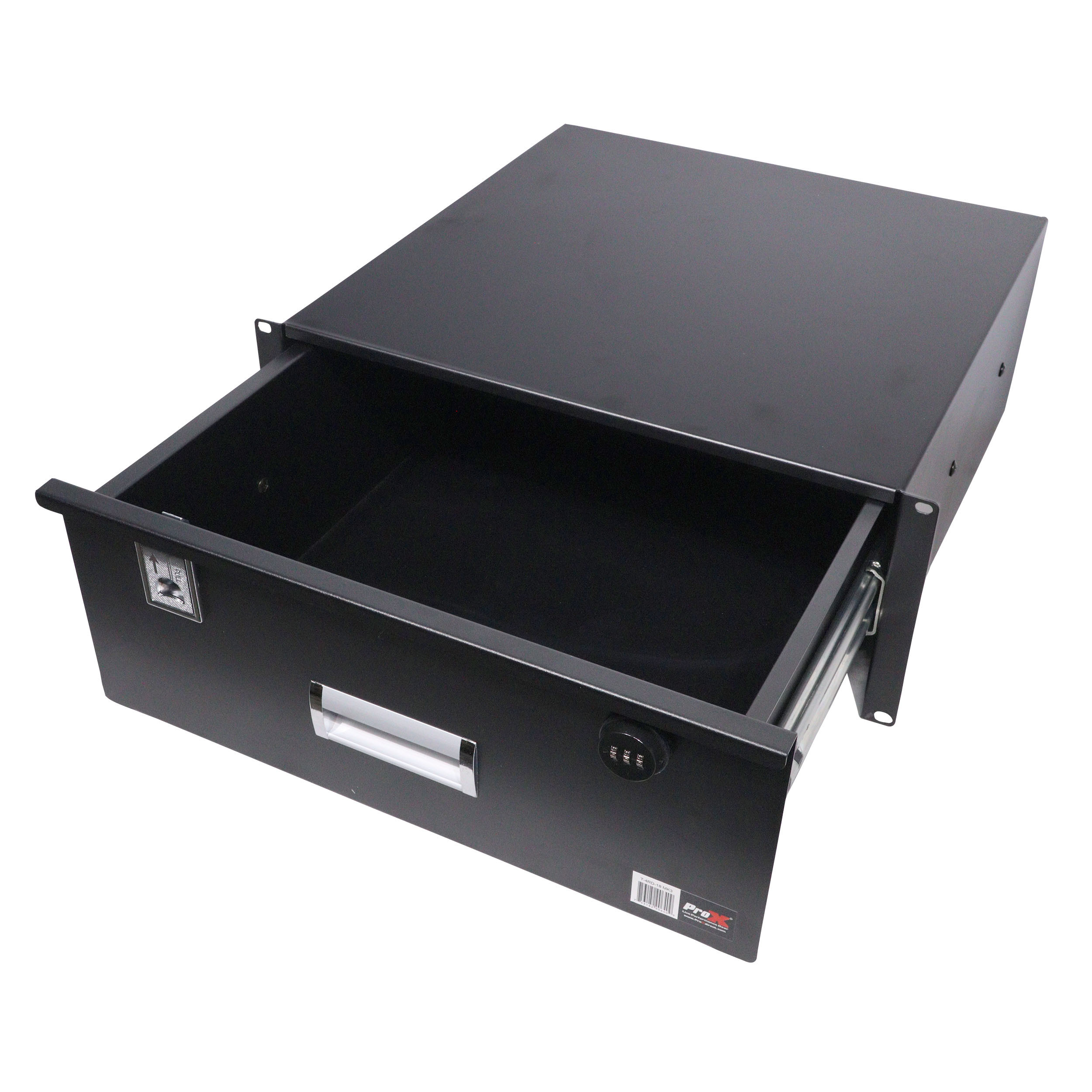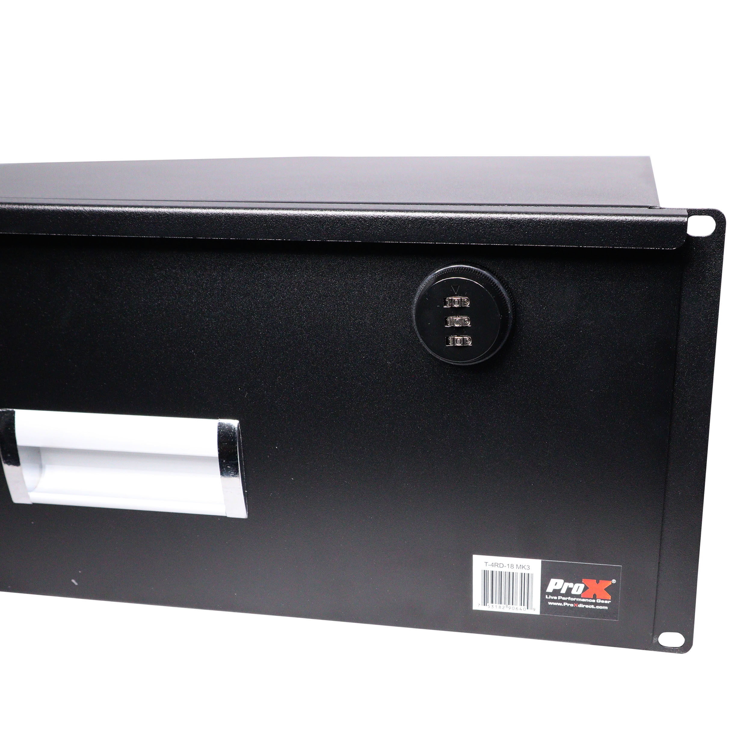 The ProX T-4RD-18 MK3 is a rack-mountable sliding drawer that can be mounted to any standard 18-inch Rack Case or Cabinet. These high-quality steel drawers are electro-static protected. It has a sleek powder-coated finish, slides out smoothly and can be locked. It has a programmable 3-digit key combination lock (with included reset key see included instructions).