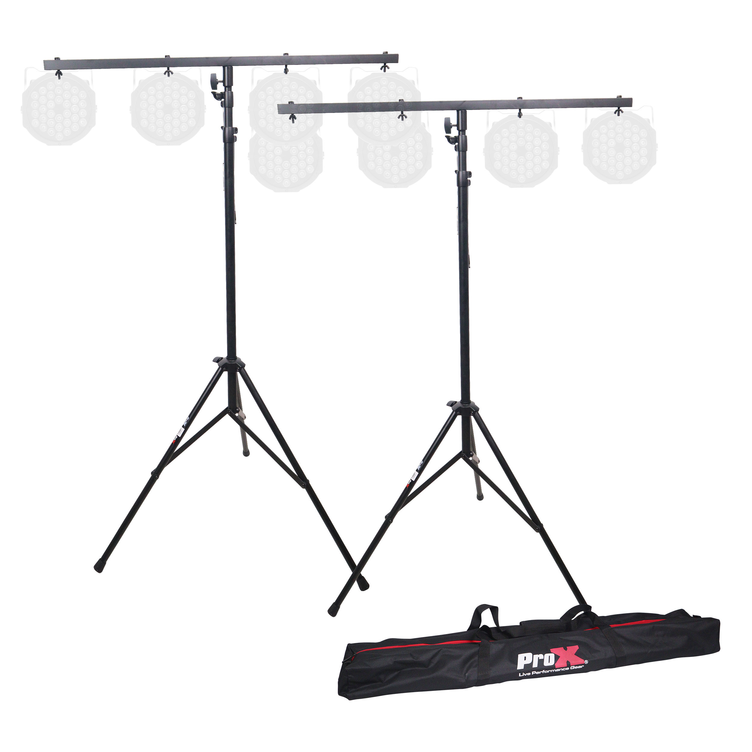 The ProX T-LS03P-9FT Lighting Stand Tree is a package of 2 identical stands with carrying case. Both stands are black and have an all-metal design, ensuring high quality. These 9ft lighting stands come with a tripod and feature a single square T-bar that supports the hanging bolts. They are lightweight and easy to transport with the included carrying case. Each stand can hold up to 50 lbs.