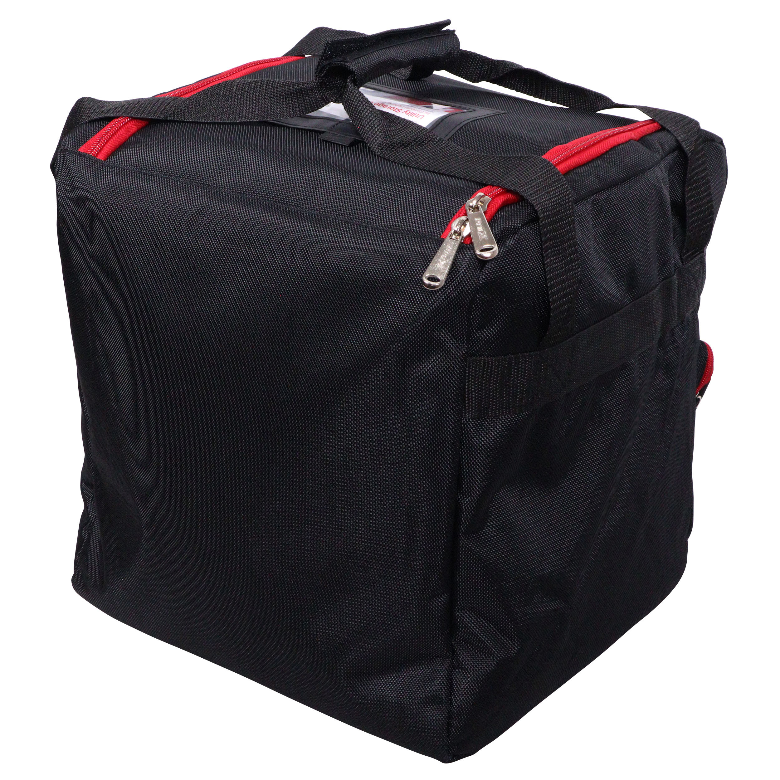 This essentially square bag, measures 13" x 13" x 13" internally and has a zippered outer pouch for additional storage. Use it to carry lights, cables, tools, parts, cameras and more.