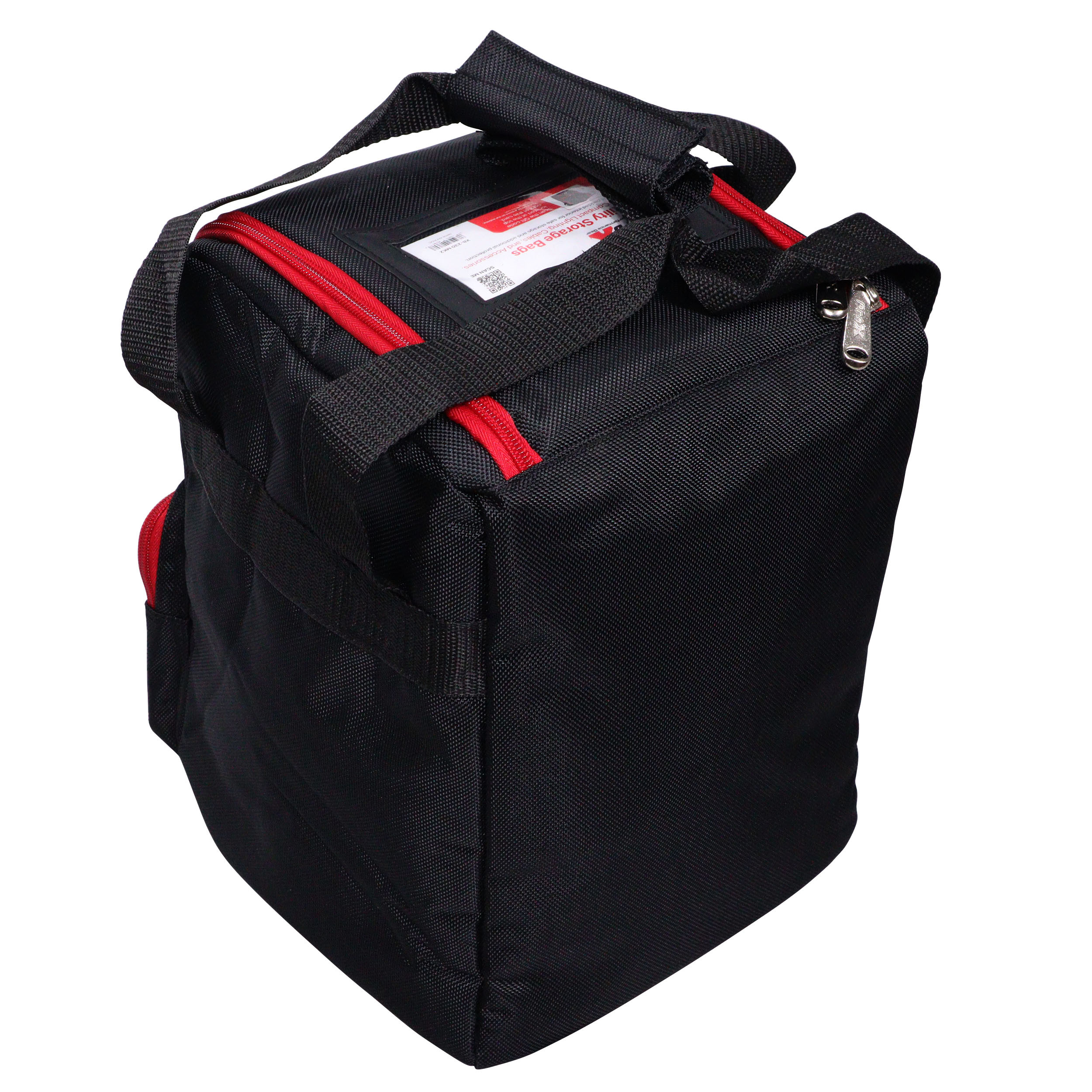 The straps are strong and durable and positioned to carry the load evenly. The interior of the units are padded to provide additonal protection for what you are carrying to your events. The strong and durable double ended red zipper compliments the design of the bag. There is an exterior pouch for additional storage as well.
