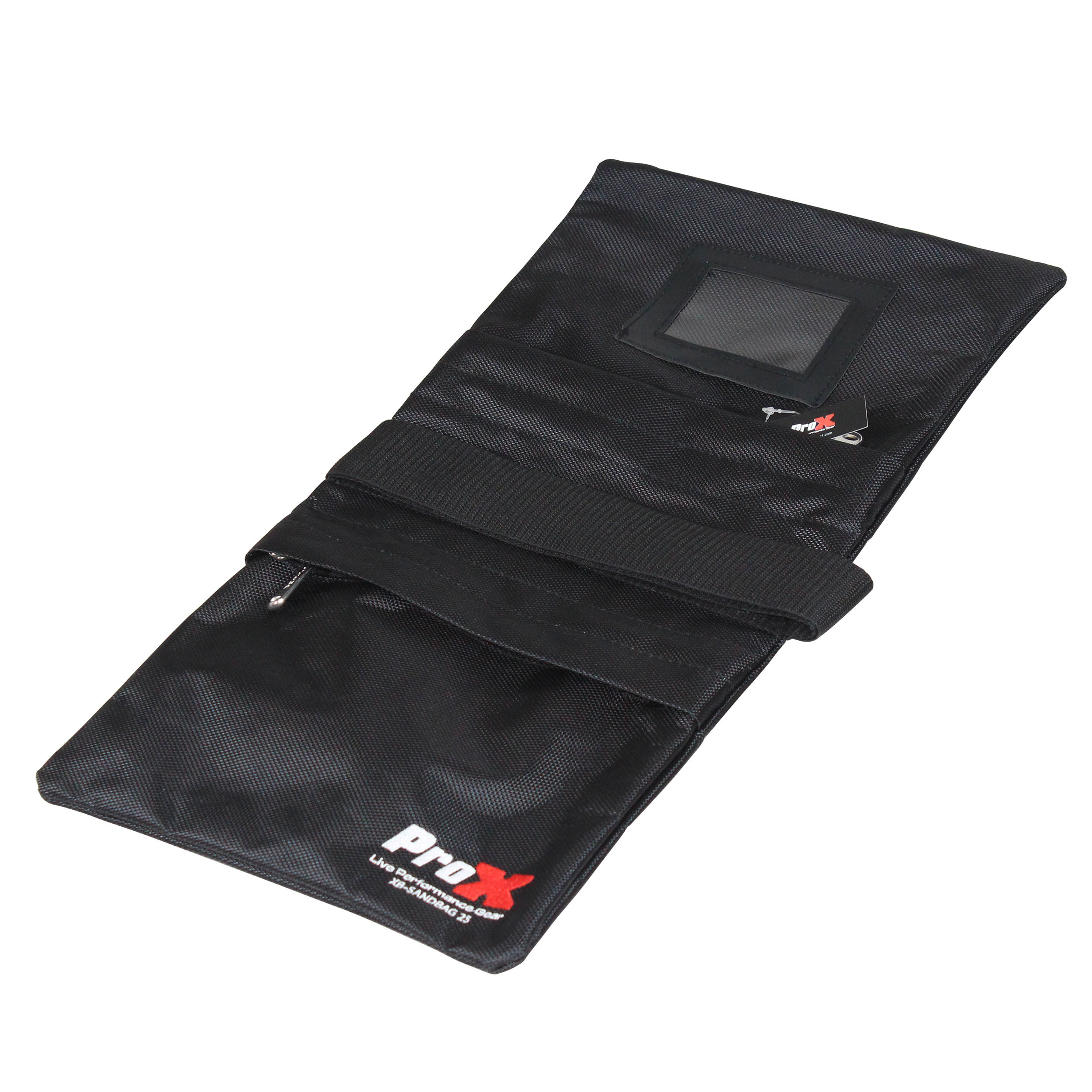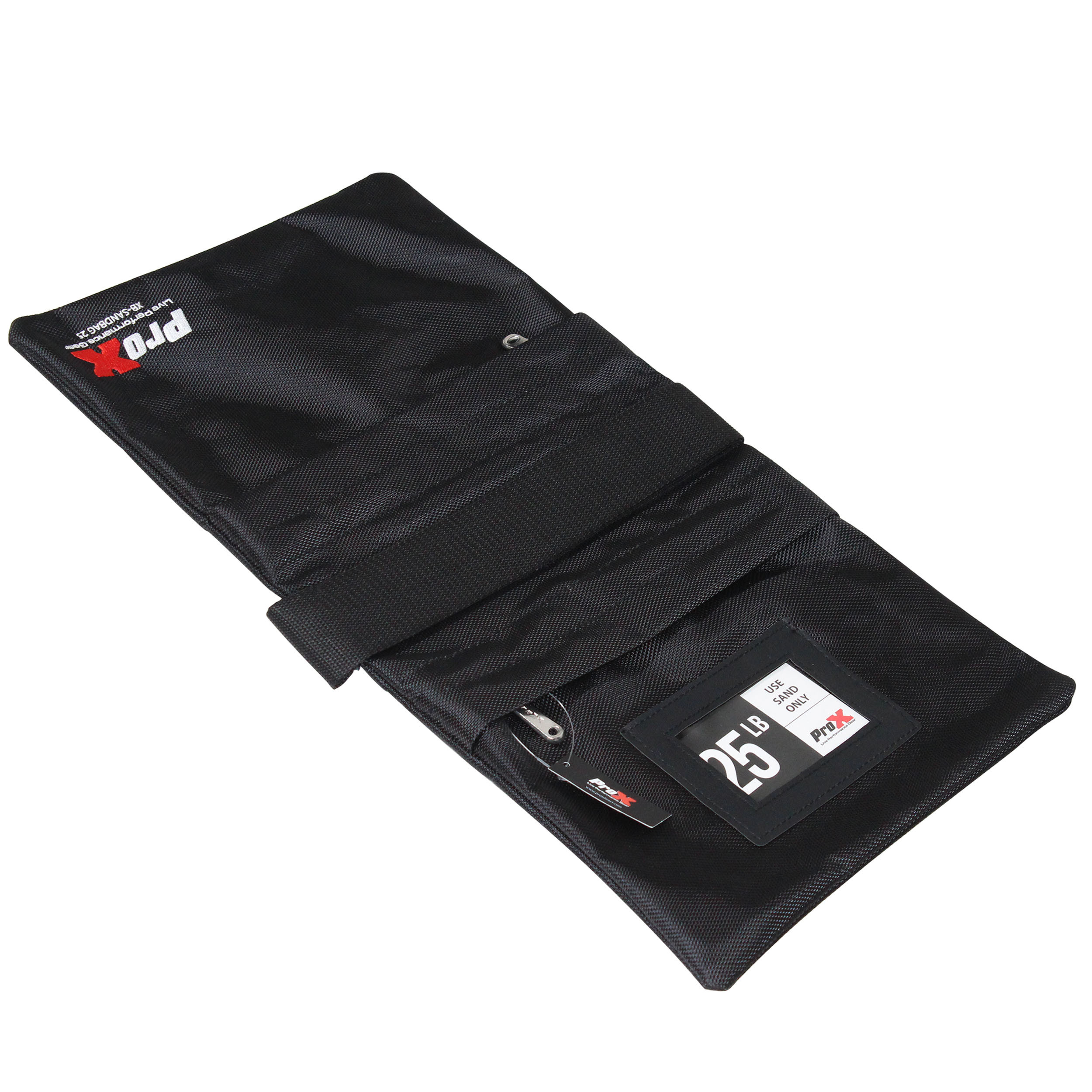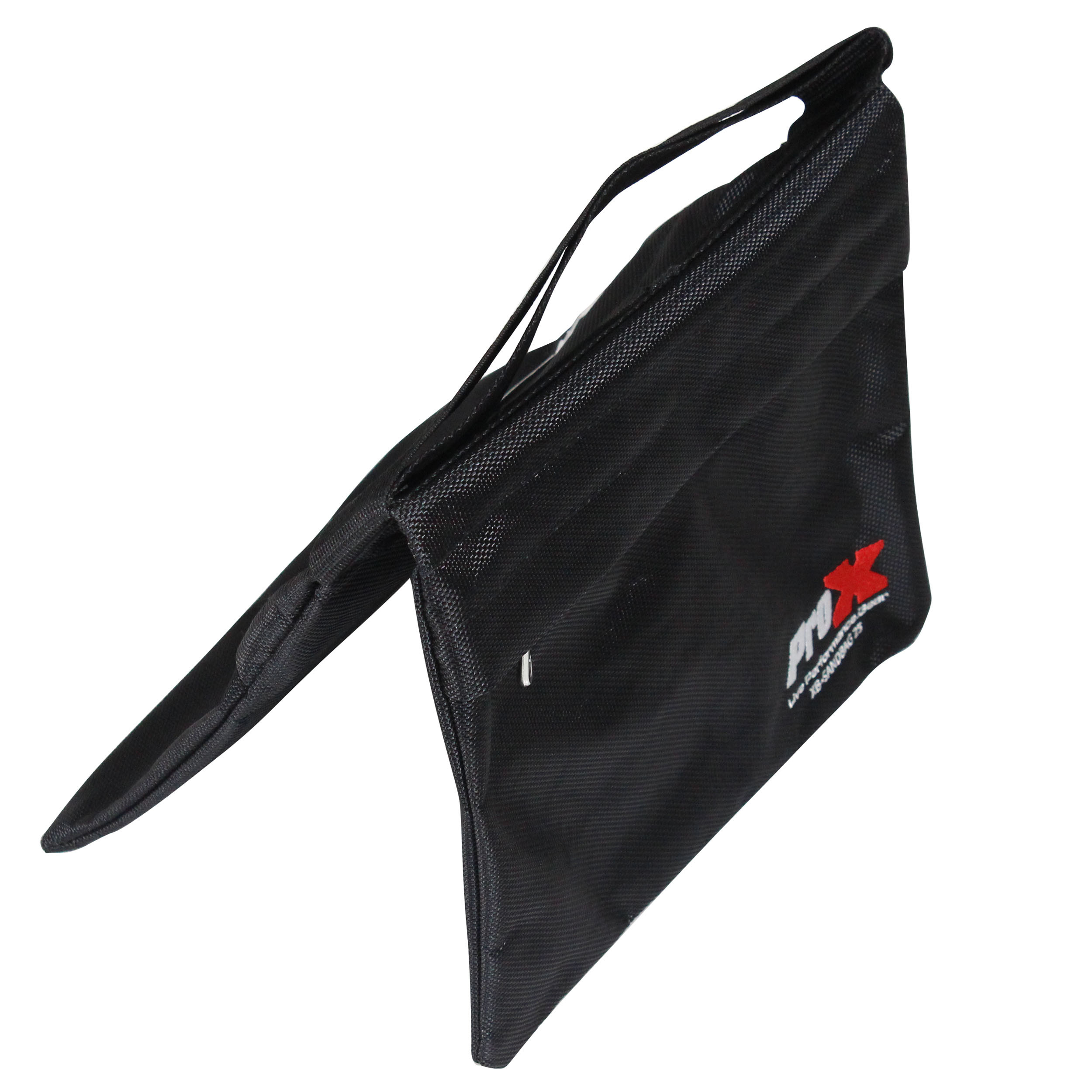 The ProX XB-SANDBAG25 25lb Capacity Double Zipper Saddlebag Sandbag is for live entertainment, studio, grips, signs, displays, and other applications requiring weights. These bags are fabricated using durable black Cordura type nylon fabric and heavy-duty zippers.