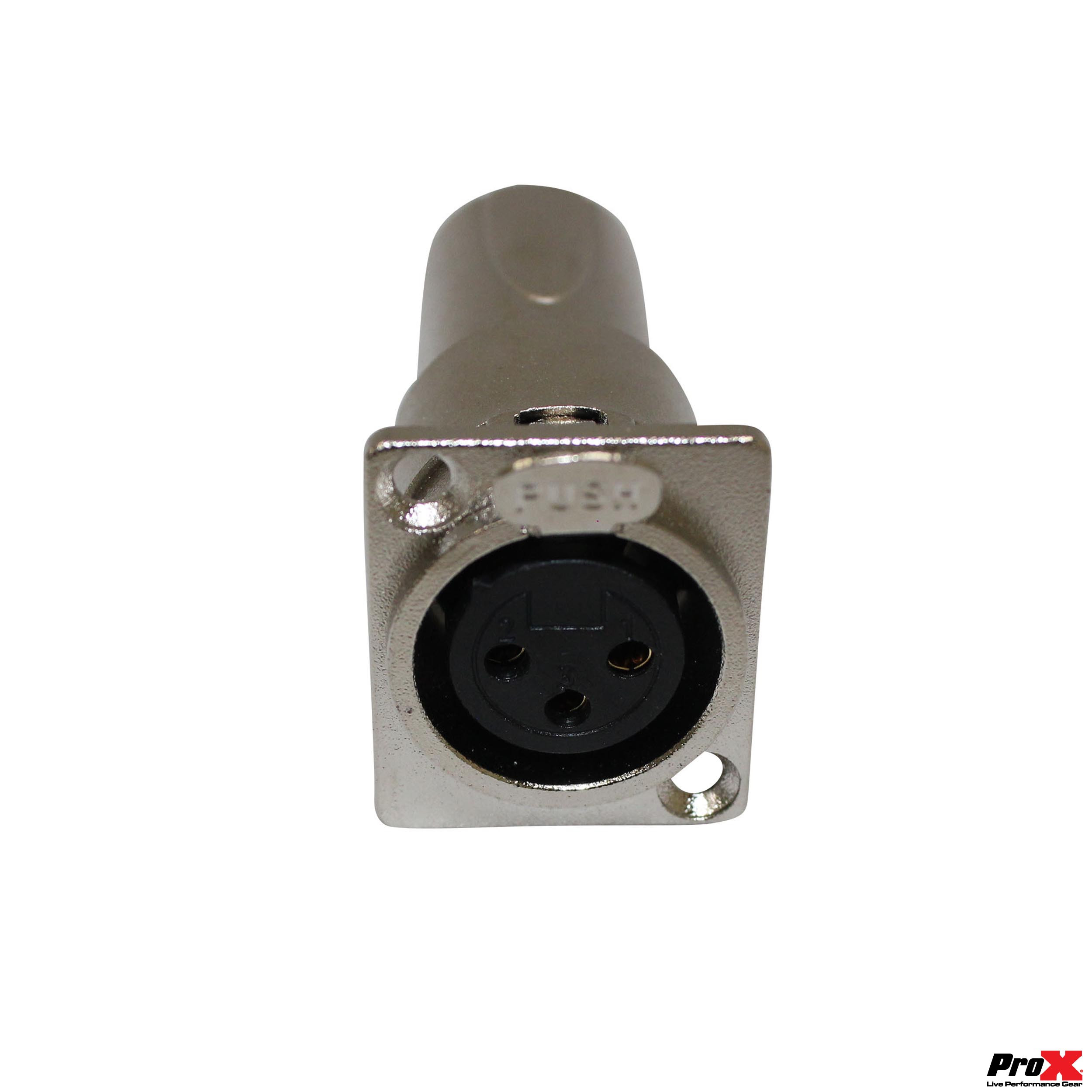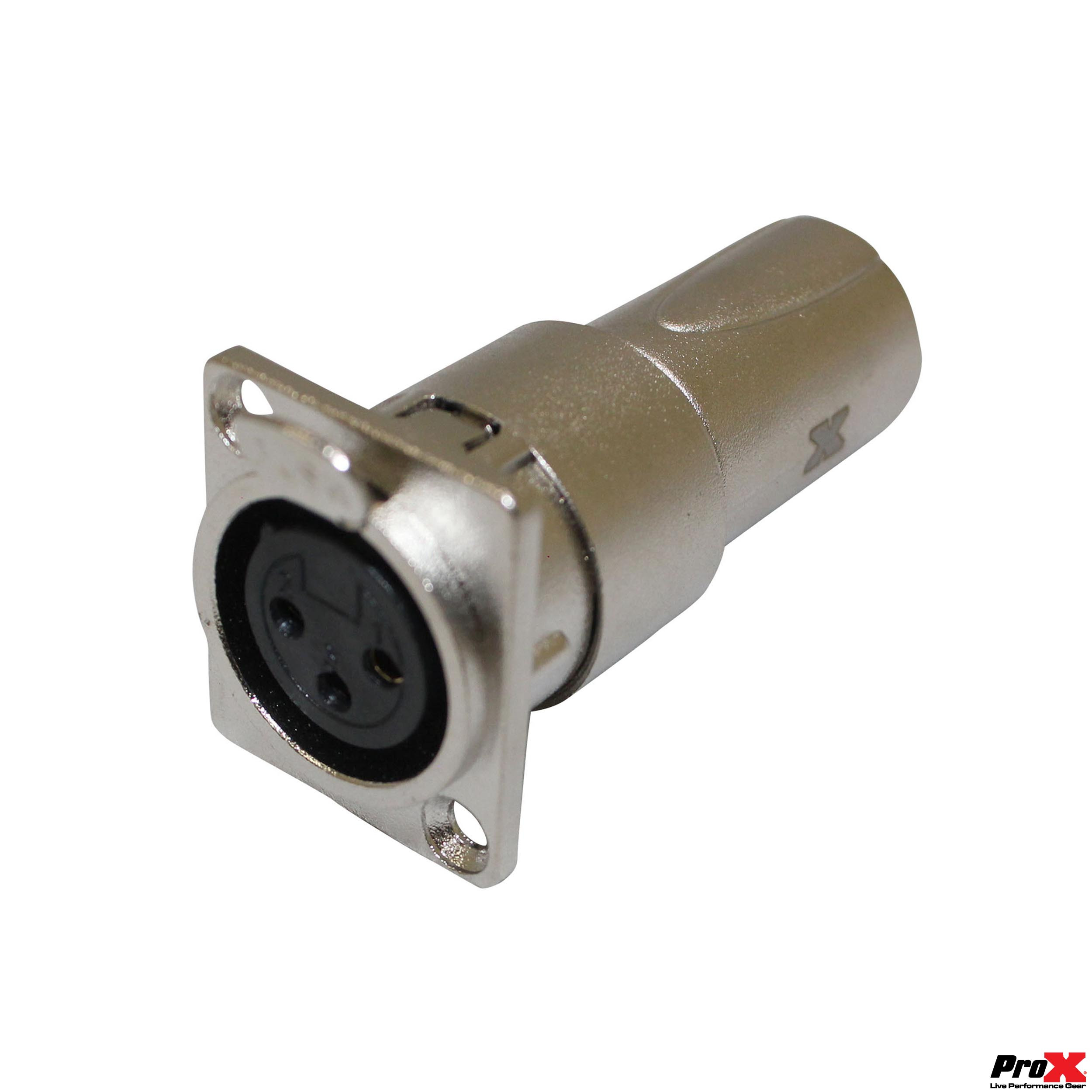 The XC-3MDF XLR Female to Male Feedthrough Adapter for Panel Mount from ProX is designed specifically for the kinds of wall panels often utilized in mobile gear and on stage. It features a zinc diecast chassis and a steel-element latch-locking device. This adapter offers a 3-pin XLR Female on the panel side and a 3-pin XLR Male on the back side.