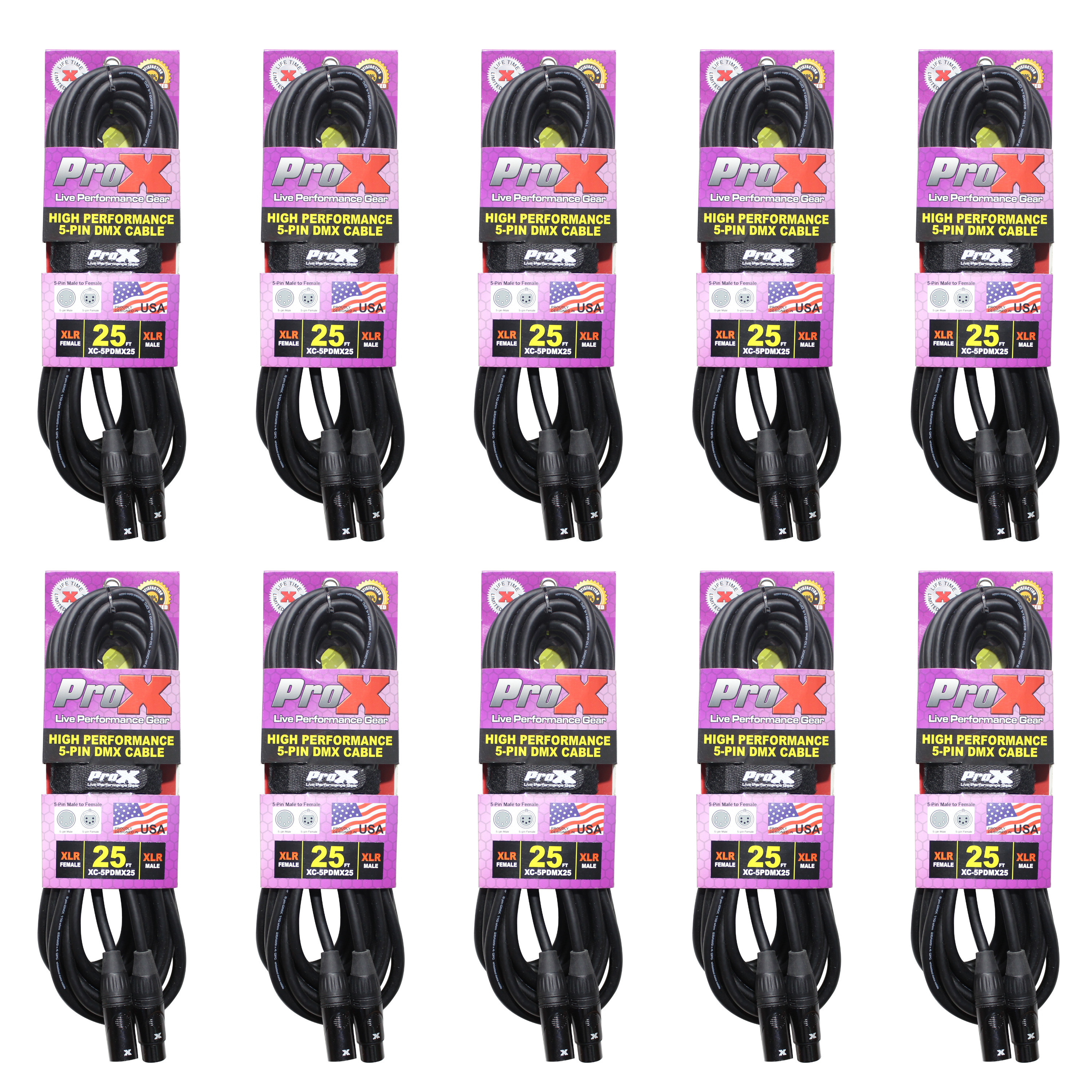 - ProX XC-5PDMX25 is ideal for professional touring and live sound applications where a device with a male DMX output/input needs to be connected to a device with a female DMX output/input.