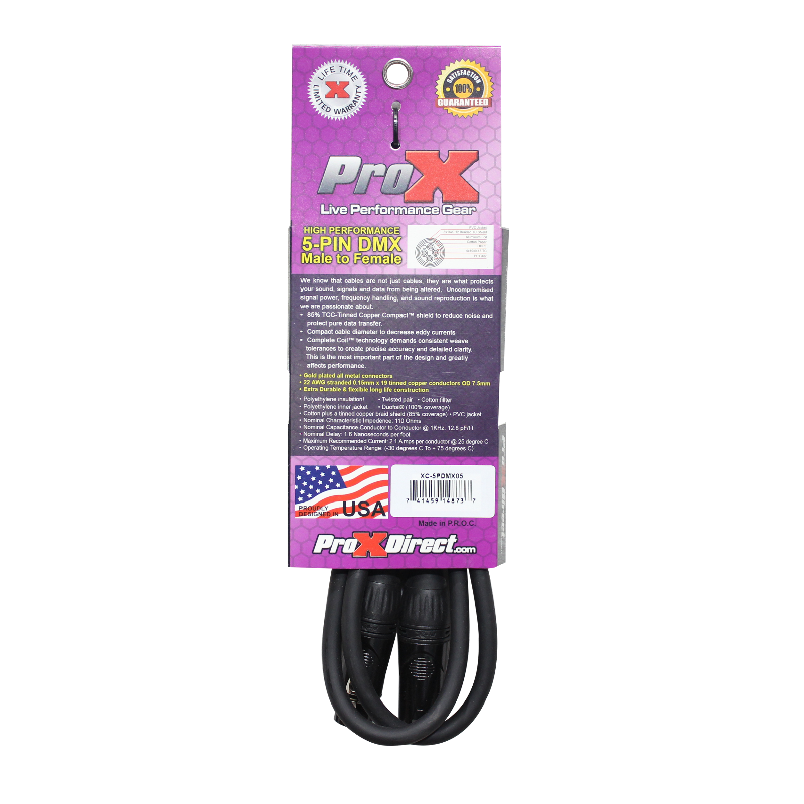 - ProX XC-5PDMX5 is ideal for professional touring and live sound applications where a device with a male DMX output/input needs to be connected to a device with a female DMX output/input.