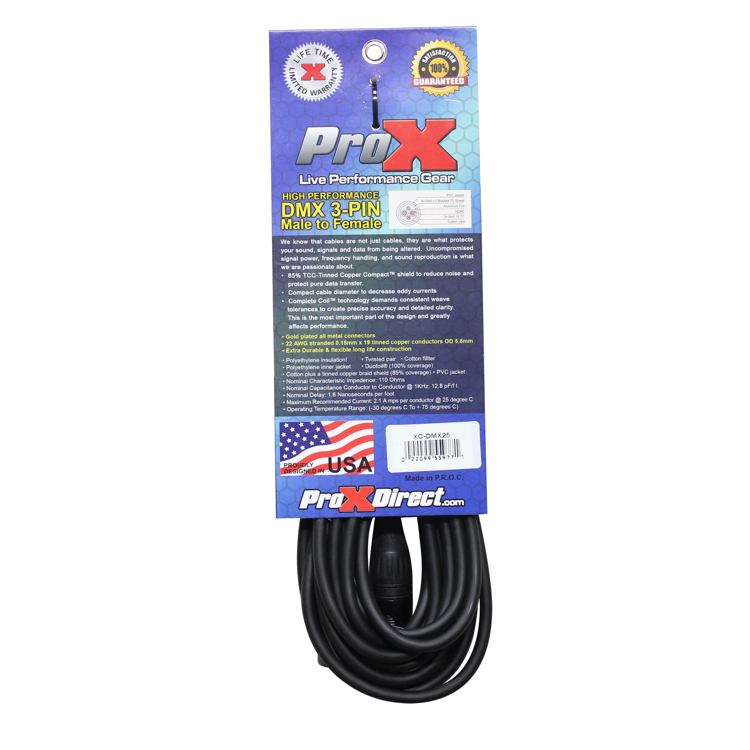 - ProX XC-DMX25 is ideal for professional touring and live sound applications where a device with a male DMX output/input needs to be connected to a device with a female DMX output/input.