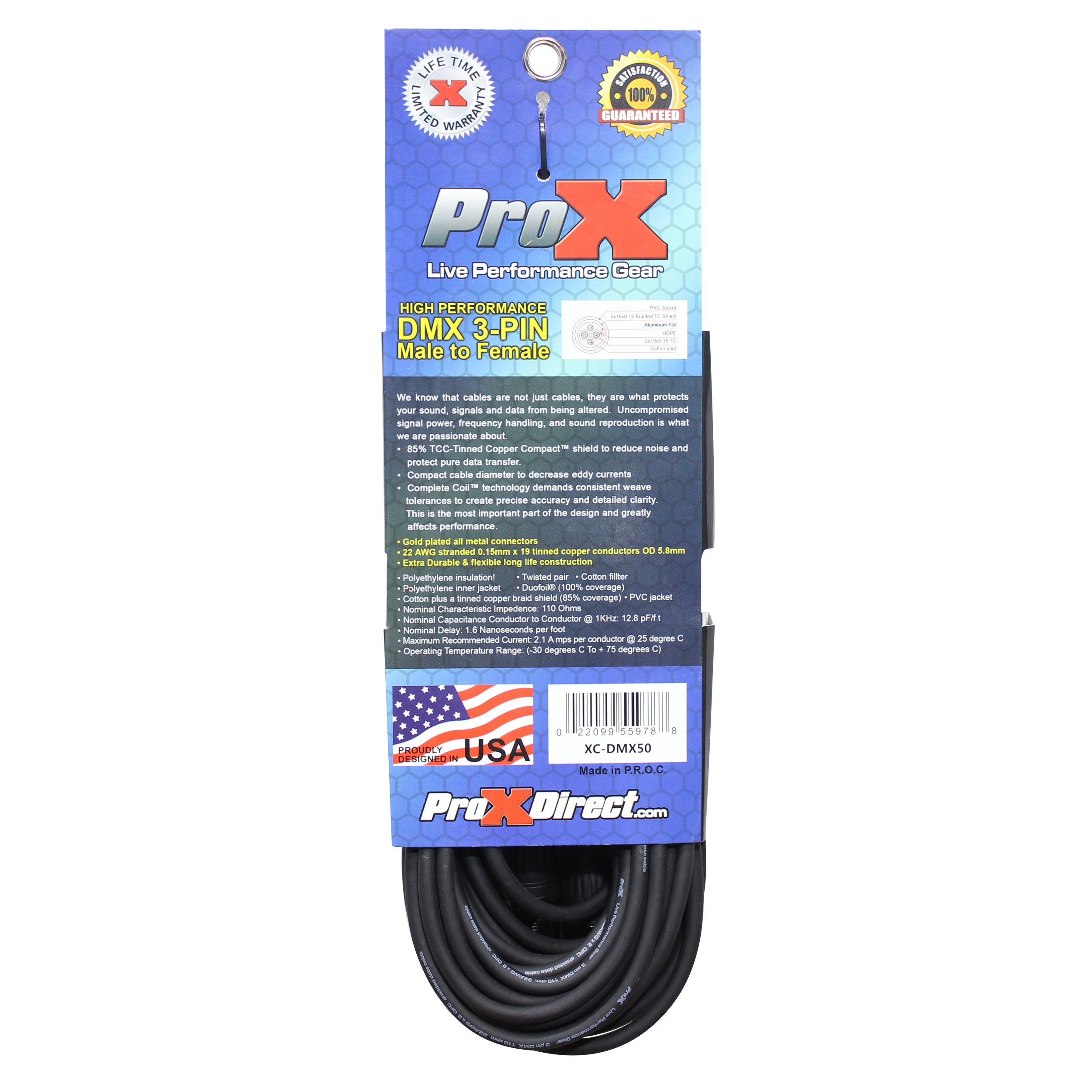 - ProX XC-DMX50 is ideal for professional touring and live sound applications where a device with a male DMX output/input needs to be connected to a device with a female DMX output/input.