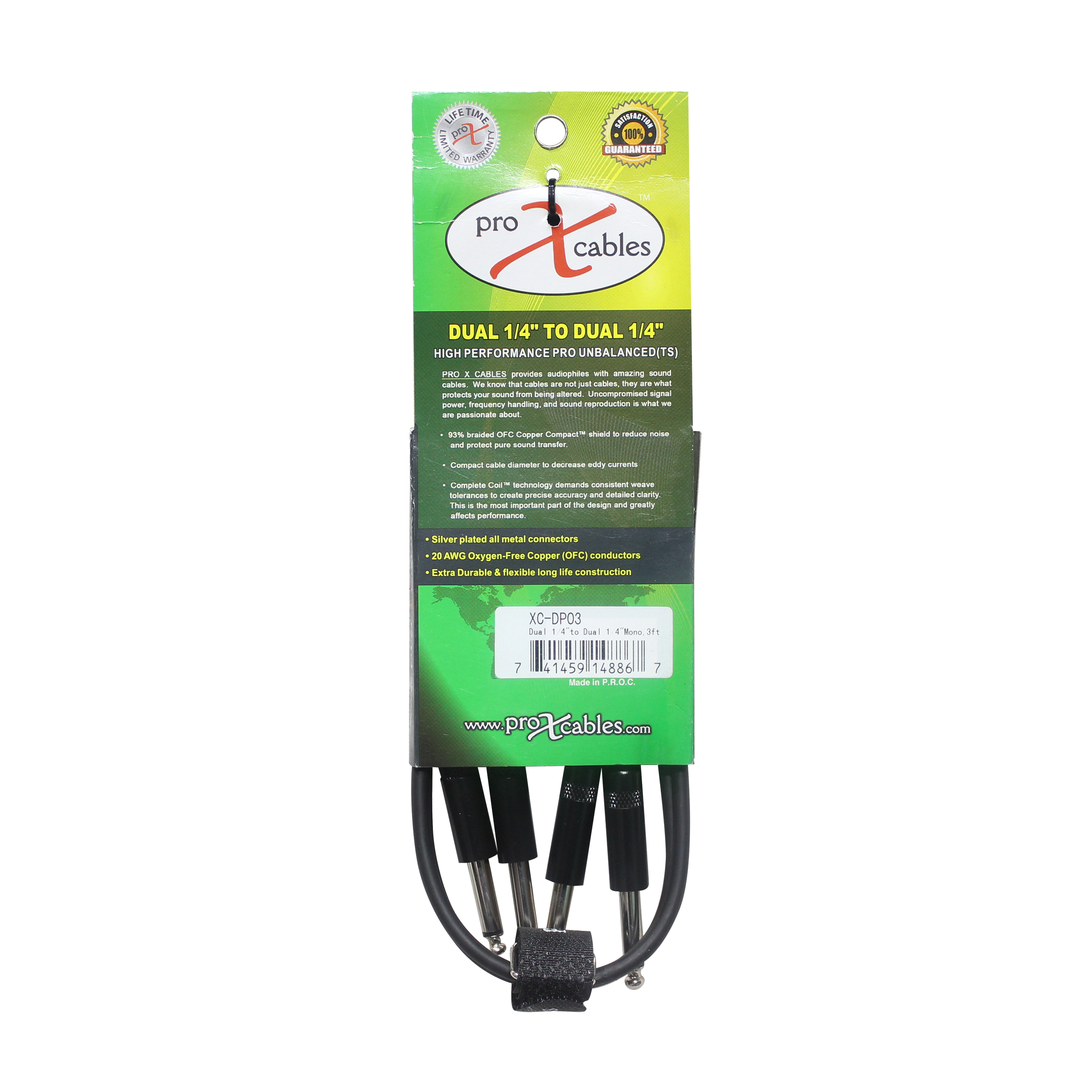ProX XC-DP03 is ideal for professional touring and live sound applications where a device with a dual 1/4" output/input needs to be connected to a device with a dual 1/4" output/input. 20AWG Oxygen-Free Copper (OFC) conductors for maximum signal transfer.