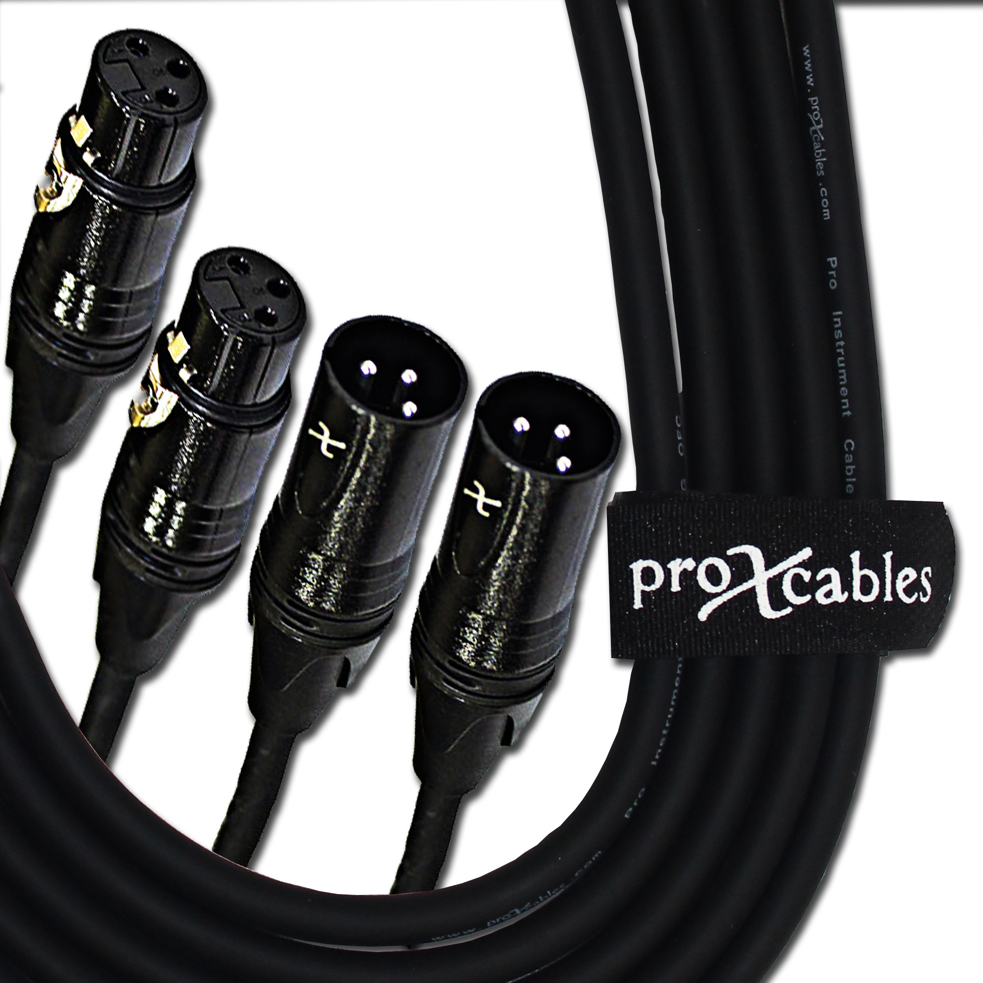 The ProX XC-DXLR03 Dual XLR-F to Dual XLR-M 3 Ft. Cable is ideal for professional touring and live sound applications where a device with a dual XLR-F output/input needs to be connected to a device with a dual XLR-M output/input. 20 AWG Oxygen-Free Copper (OFC) conductors for maximum signal transfer.