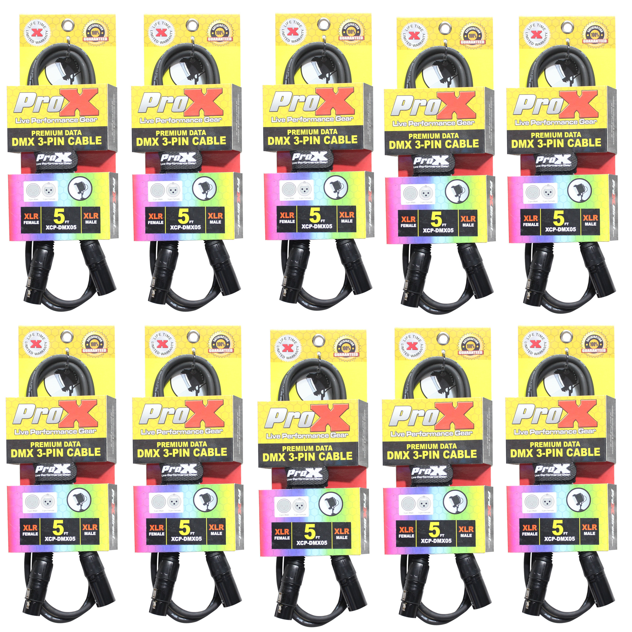 ProX XCP-DMX05 3-Pin DMX Premium Cable, 10-Pack, 5ft Each