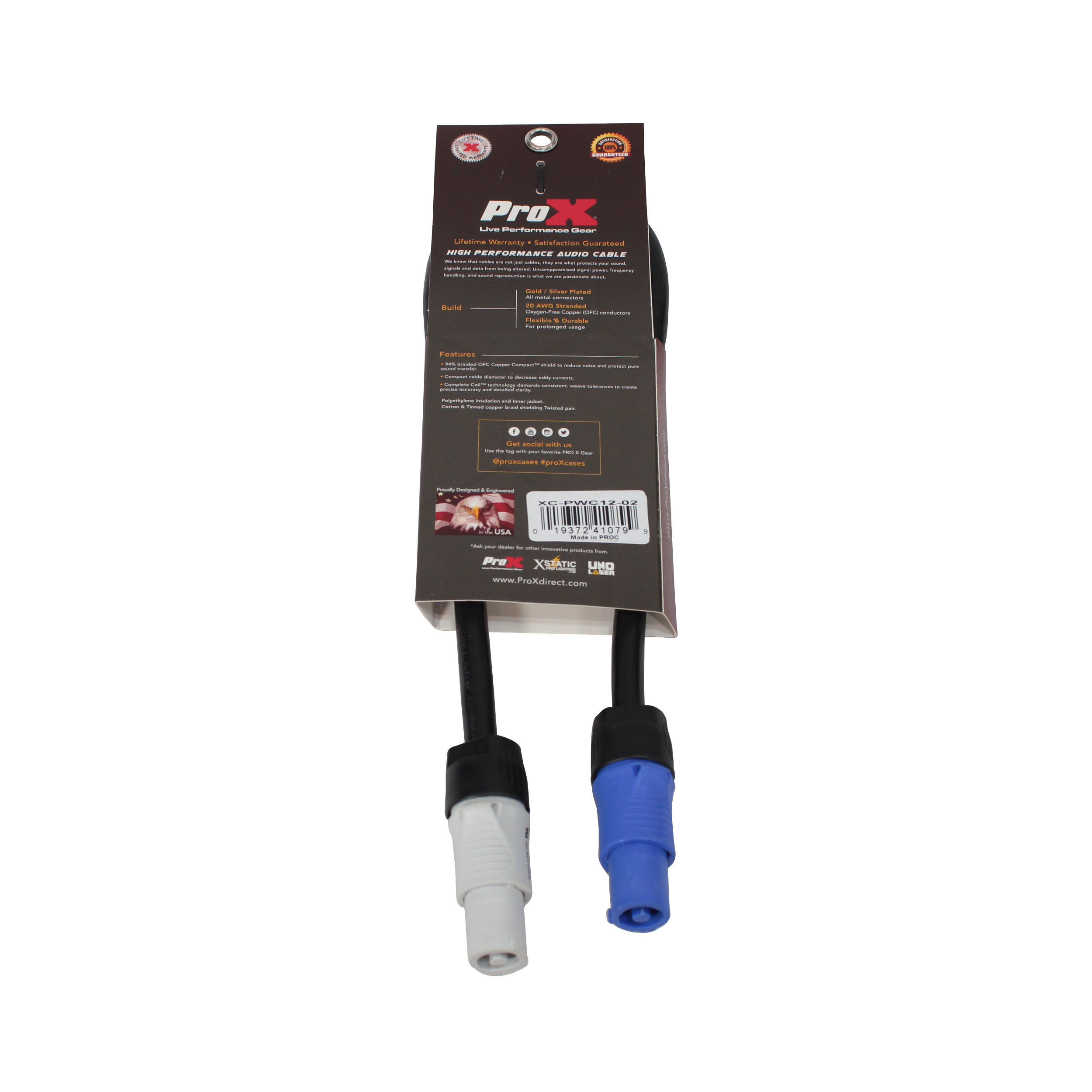 12 AWG High-Performance powerCON Grey Male to powerCON Blue Male. The powerCON Cable is the ideal power cable for powering many professional audio devices. The powerCON connector is a 3-conductor, locking power connector which provides a safer power connection than the IEC 60320 C13/C14 connectors commonly found on consumer audio components, computers, power adapters, and other devices. The twist connector mates the ground contact before connecting the neutral and line contacts, ensuring an electrically safe connection.