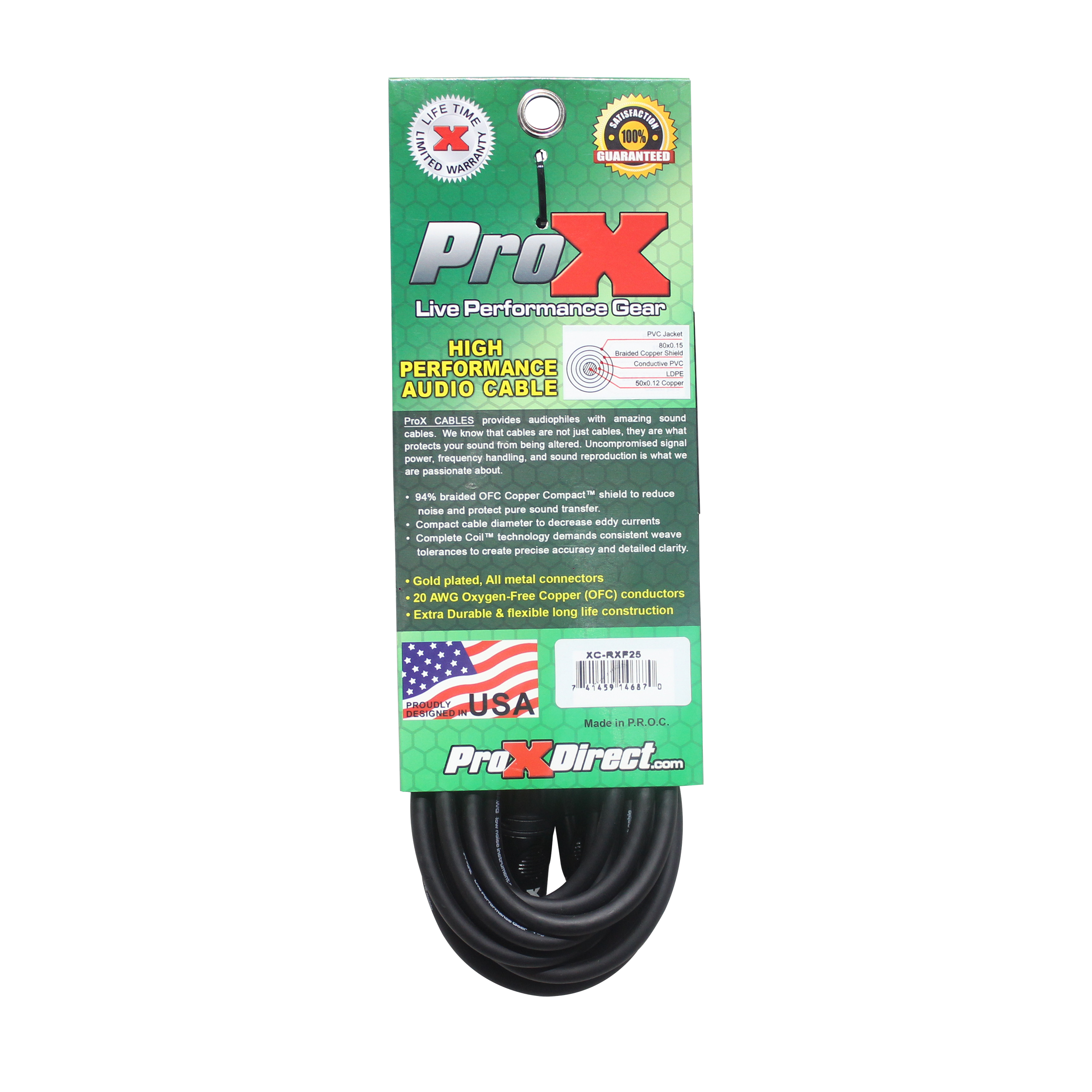 ProX XC-RXF25 is ideal for professional touring and live sound applications where a device with a female XLR output/input needs to be connected to a device with a RCA output/input. 20AWG Oxygen-Free Copper (OFC) conductors for maximum signal transfer.