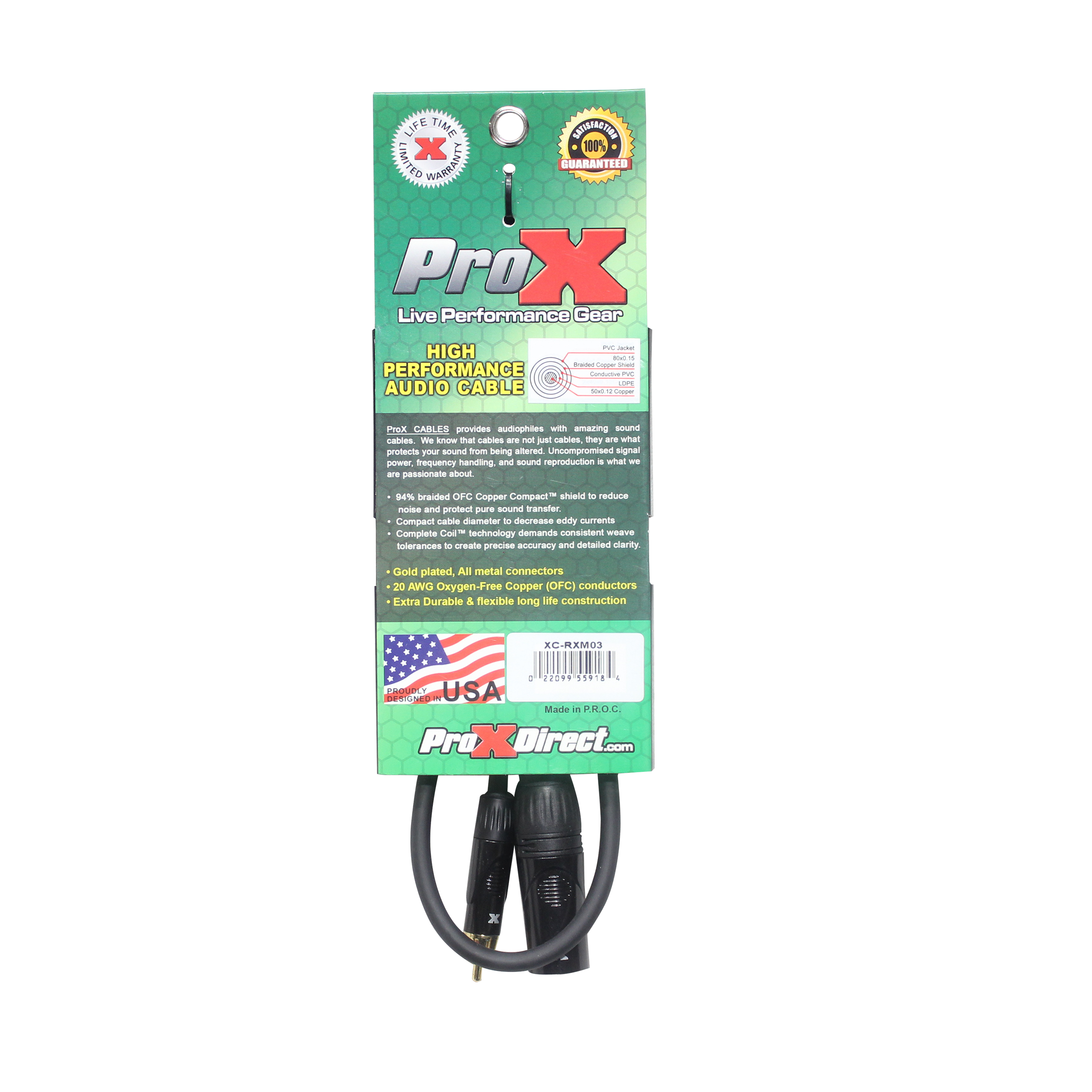 ProX XC-RXM3 is ideal for professional touring and live sound applications where a device with a male XLR output/input needs to be connected to a device with a RCA output/input. 20AWG Oxygen-Free Copper (OFC) conductors for maximum signal transfer.