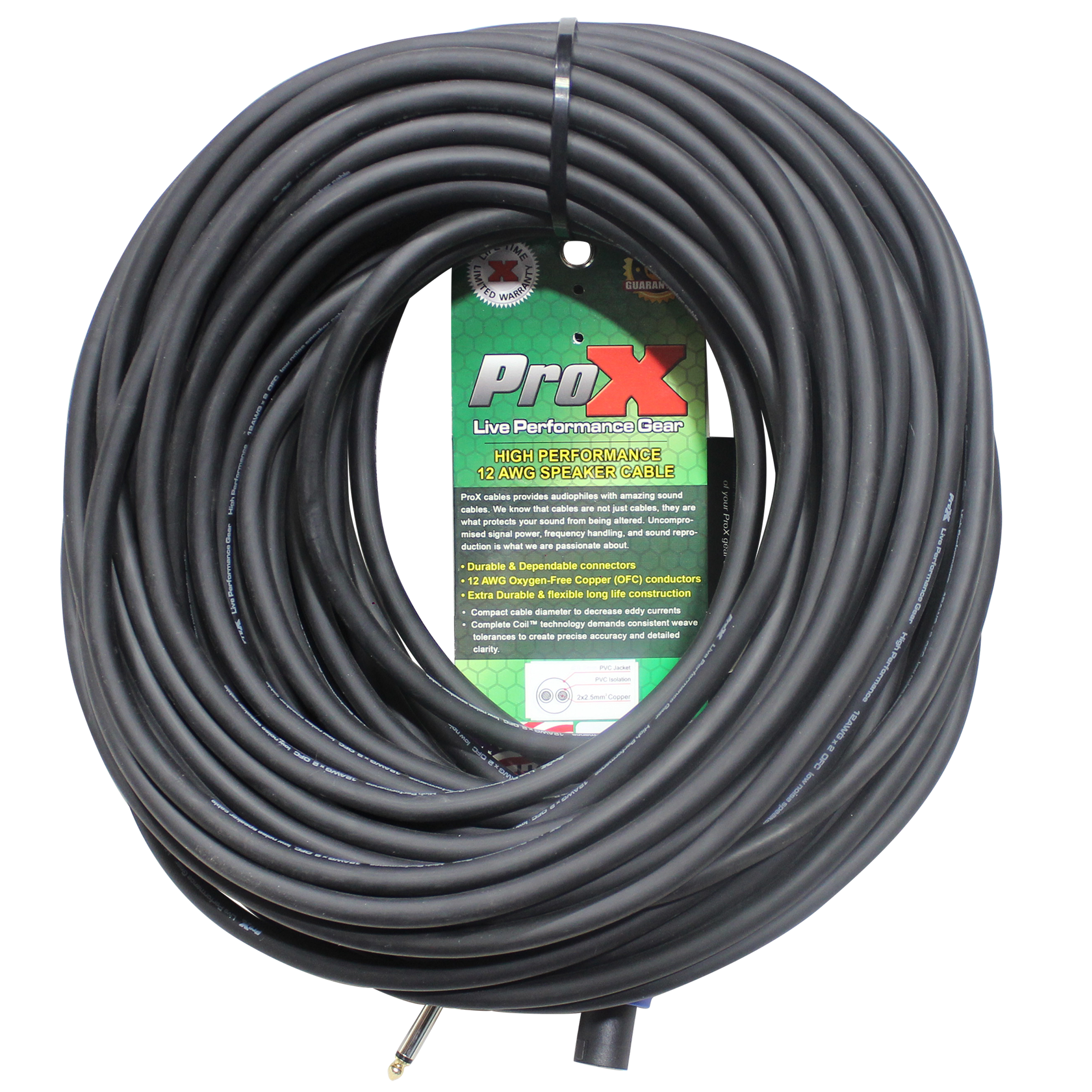 - 12 AWG x 2 Oxygen-Free Copper (OFC) conductors.