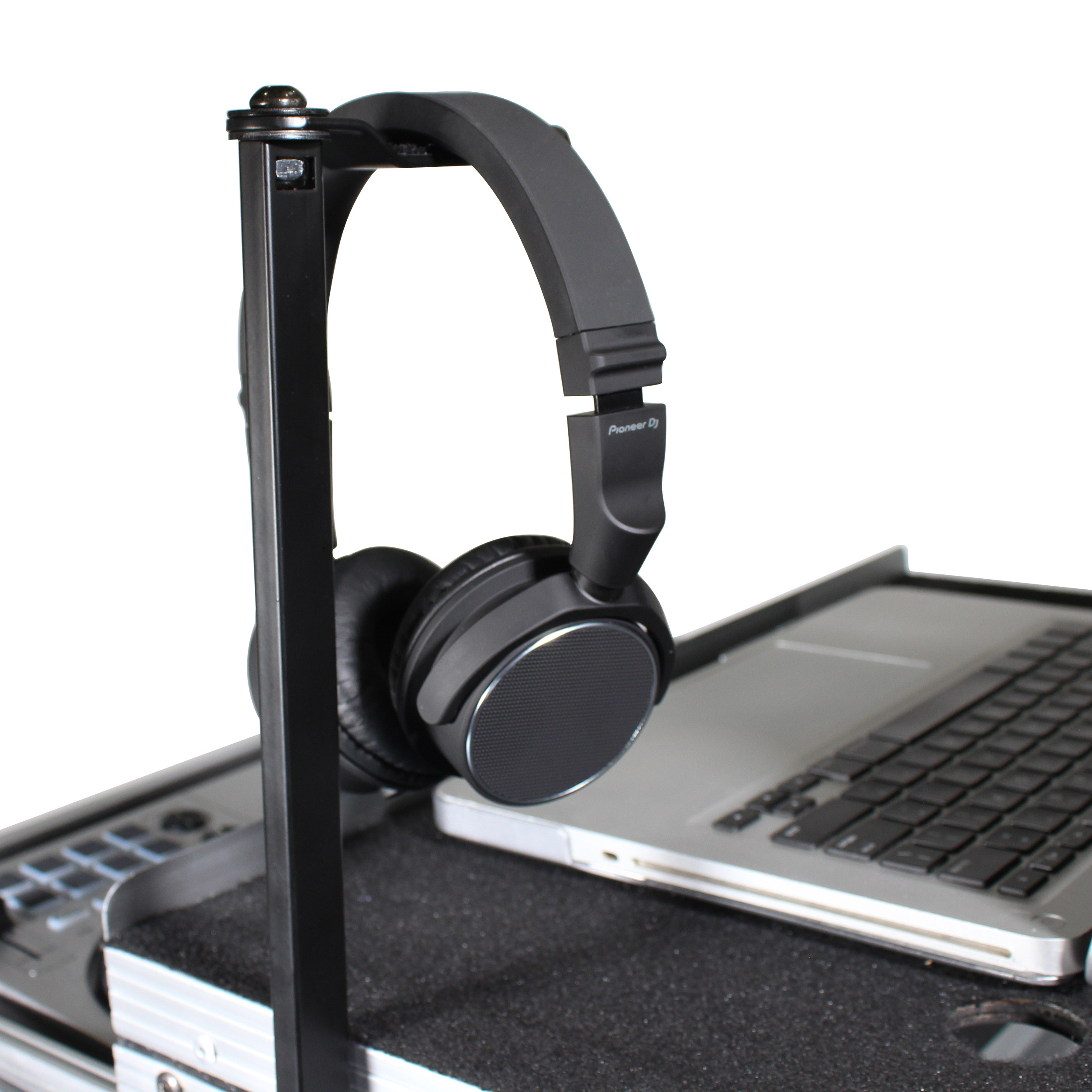The ProX X-HH815 Headphone Pole Stand is designed with the DJ in mind. It is built with a vertical pillar pole and a rotating hangar which makes hanging a pair of headphones on your rig, fast, easy and efficient. Prevent your headphones from falling and slipping. This device provides firm support to hang virtually any over the ear headphones. The headphones become more convenient to access and to prevent damage from dropping. It is easy to set up, very sturdy and with a solid feel, it can handle any weight headphones. This is a great addition to your performance rig and to make for a neater setup.