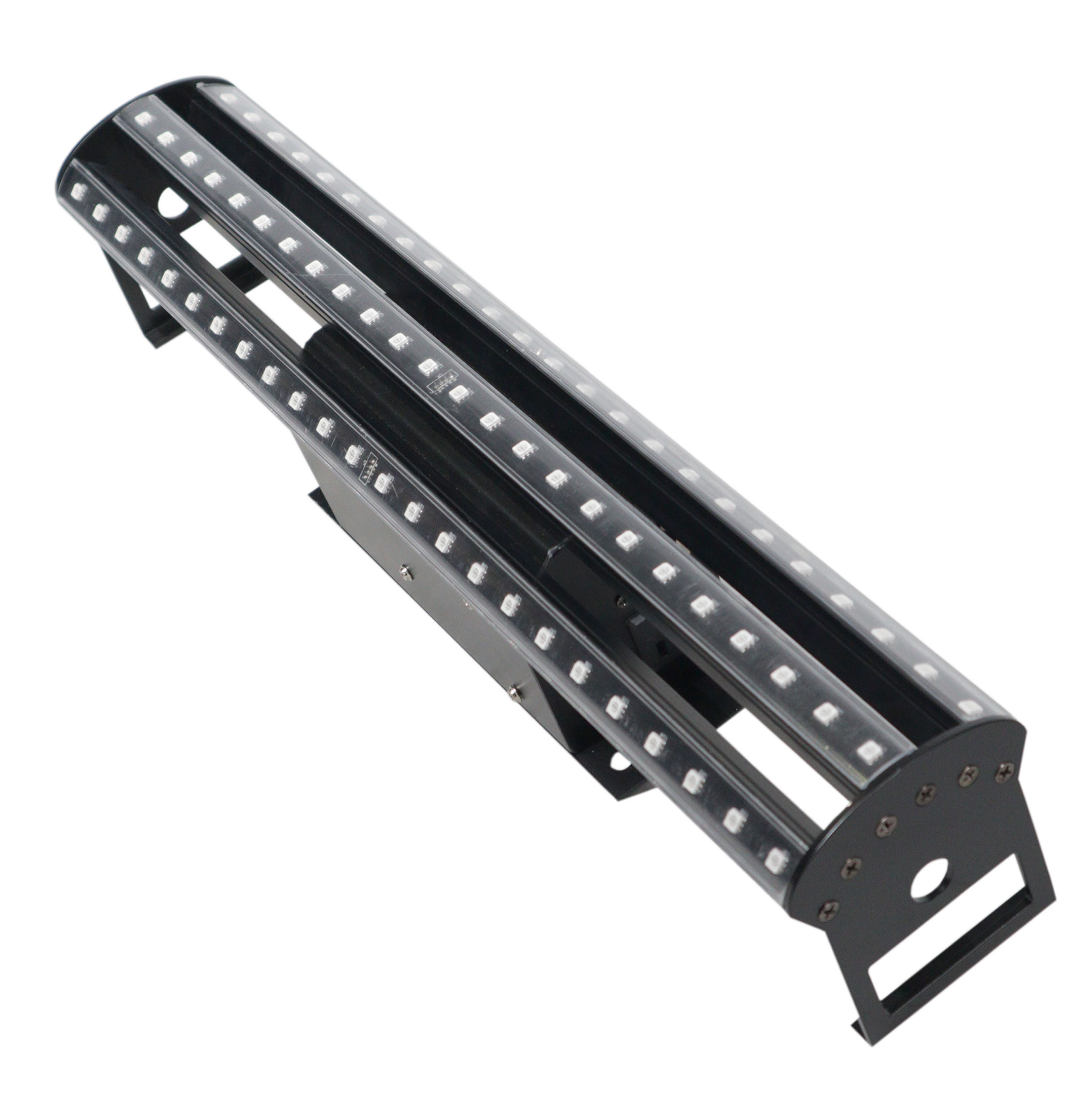 It has 16 Million color variations and effects that can be controlled via Wireless Remote Control, DMX-512, and Programmable Auto Functions. It has an M10 Threaded hole mount stands, clamps, and adapters. It can be linked with multiple units and securely bolted together in series through the machine drilled home on each side.
