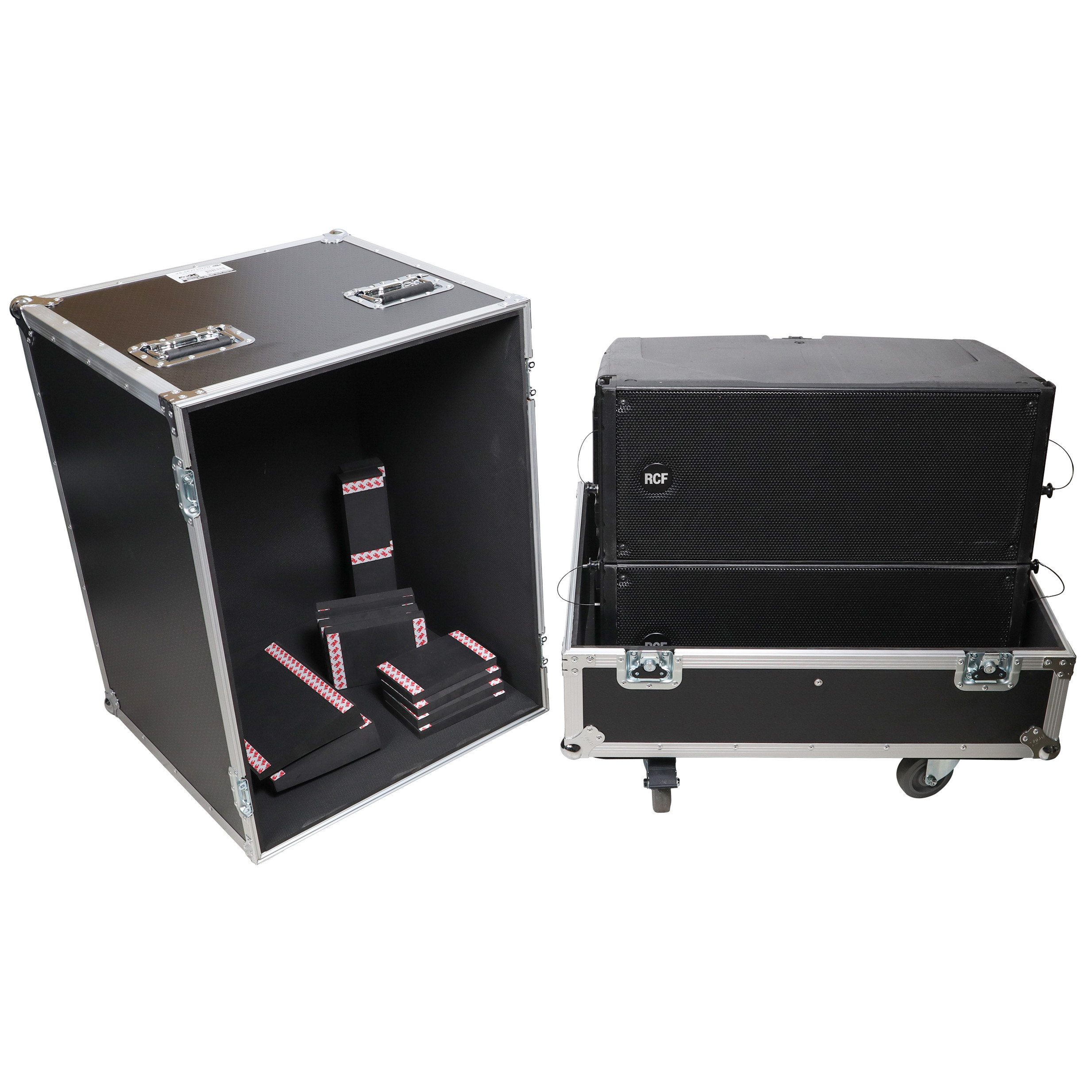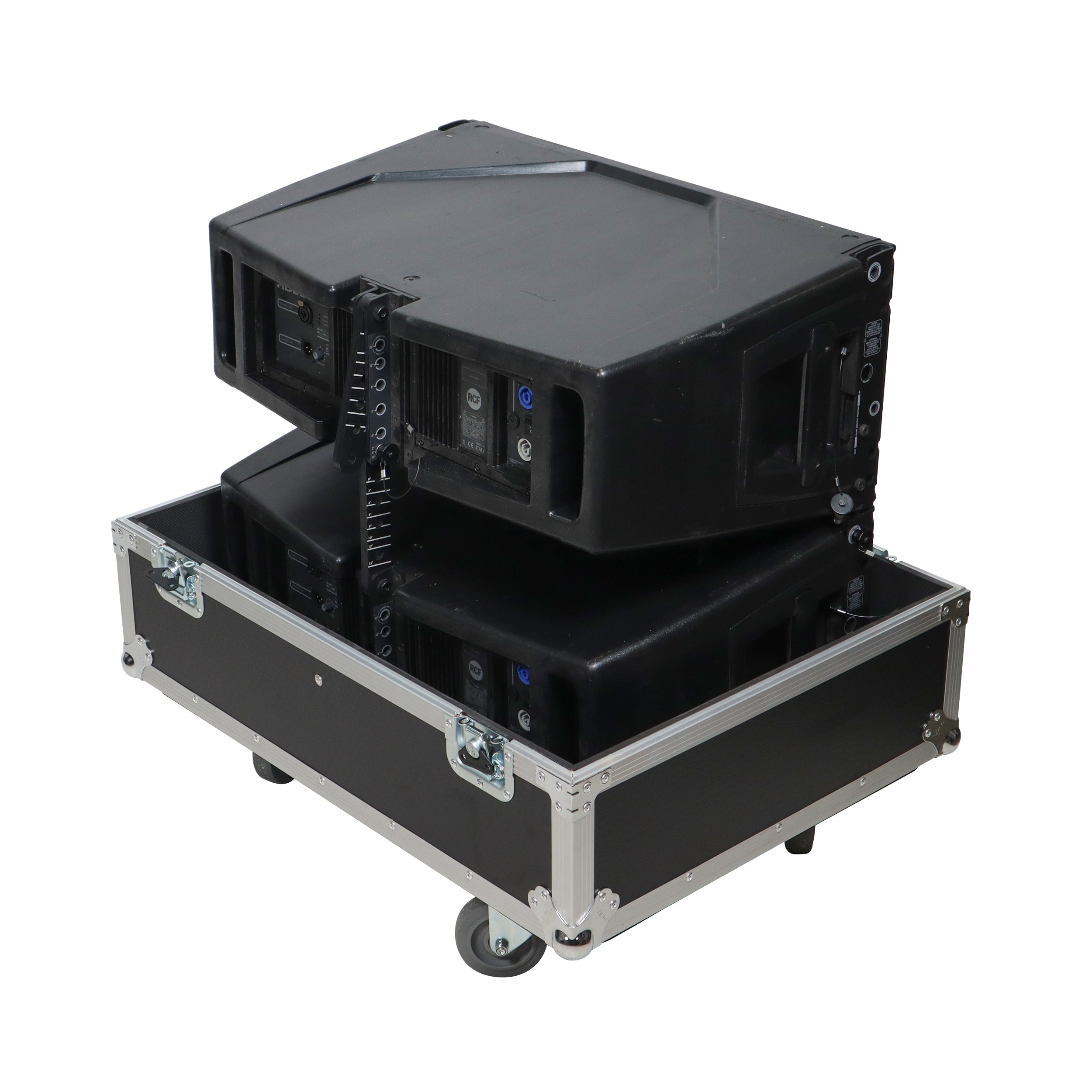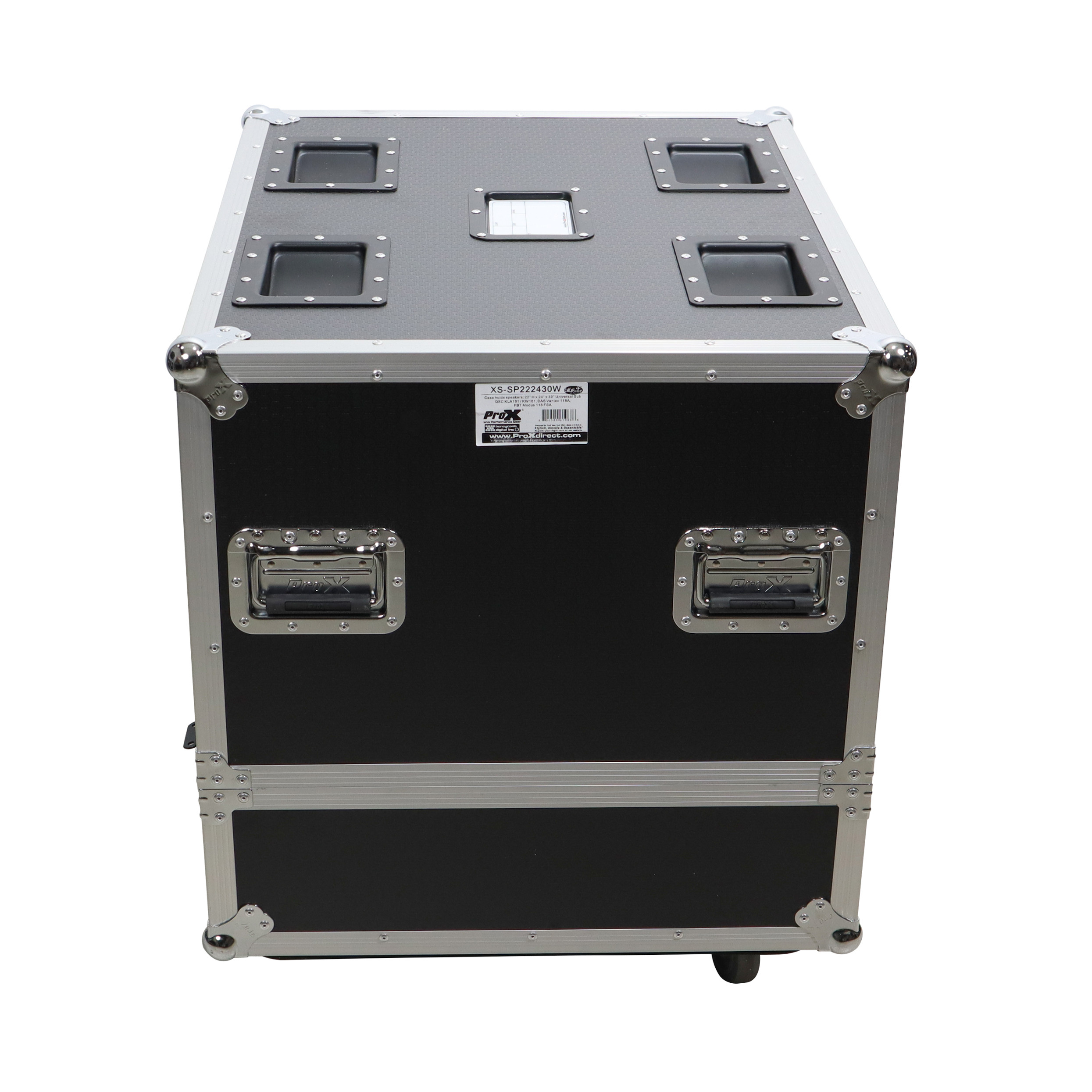 Equipped with four steel 4" casters (2-Locking), this case is easy to travel with and can be stacked with other flight cases using the caster dishes on top. It is ideal for AV production companies, touring bands, entertainment groups, mobile DJs, and anyone who owns line array speakers. ProX Cases are designed to safeguard your investment.