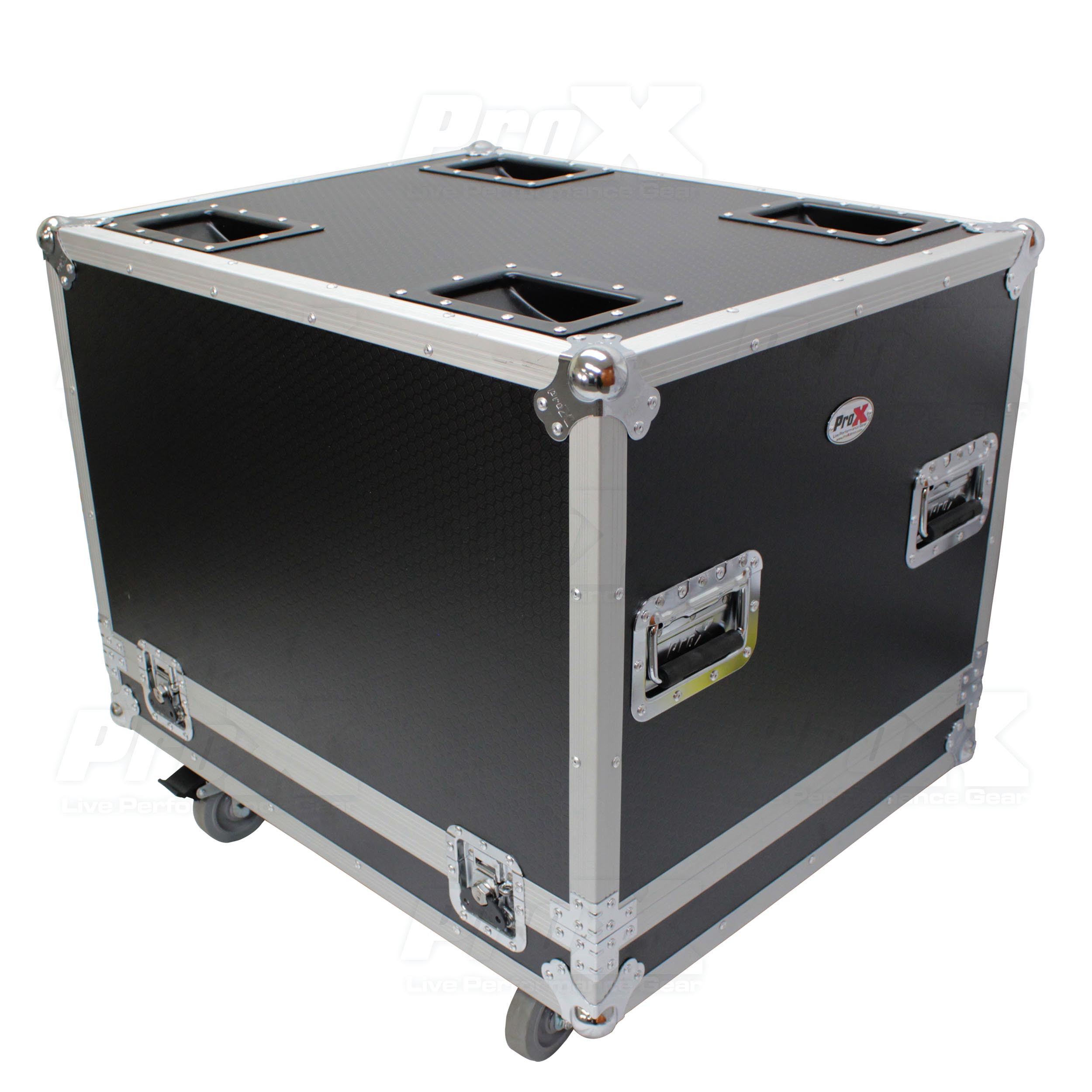 This particular case rests on four high quality 4" casters designed for easy traveling, it also comes equipped caster dishes on top to facilitate stacking with other flight cases. The X-RCF-SUB8004AS is the perfect case for AV production companies, touring bands, entertainment groups, mobile DJ's or anyone who owns RCF SUB 8004-AS subwoofer speakers. Protect your investment with ProX Cases.