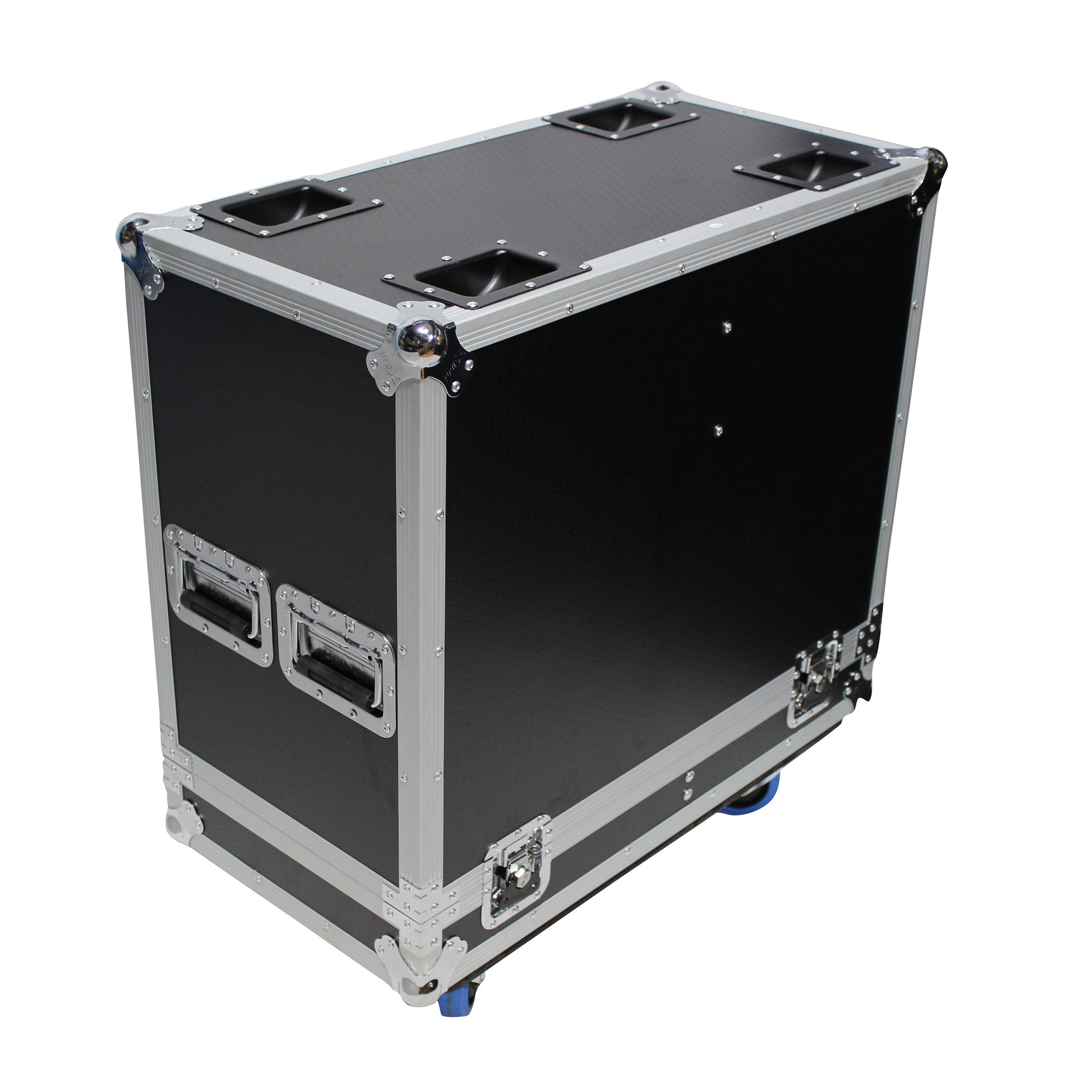 This professional speaker case employs a 3/8" laminated plywood that has a hard shell with internal impact resistant padding to provide the best protection for your investment. No matter where you take your speakers you can have peace of mind nothing will get damaged during transit or in storage.This particular case rests on four high quality 4" casters designed for easy traveling, it also comes equipped caster dishes on top to facilitate stacking with other flight cases.