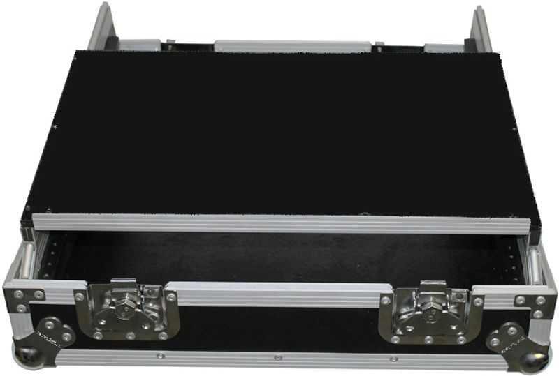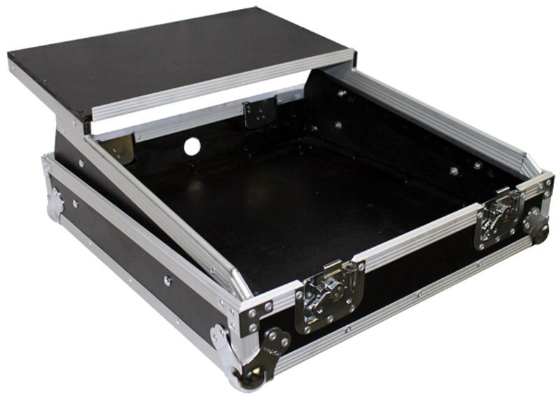 This 10U 19 inch Slant ATA 300 style rack mount case is perfect for the mobile DJ. If you need protection for your investment, then look no further. The sliding laptop shelf saves table space, and gives the best access to all of your gear. The removable cable access cover allows you to lock the case while keeping your gear connected, and offers a clean look. Premium Series laminated plywood ensures the best protection and peace of mind. Comes with mounting hardware.