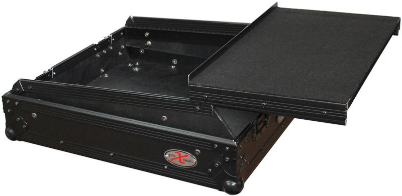 This 10U 19 inch Slant ATA 300 style rack mount Black on Black case is perfect for the mobile DJ. If you need protection for your investment, then look no further. The sliding laptop shelf saves table space, and gives the best access to all of your gear. The removable cable access cover allows you to lock the case while keeping your gear connected, and offers a clean look. Signature Series laminated plywood ensures the best protection and peace of mind. Comes with mounting hardware.