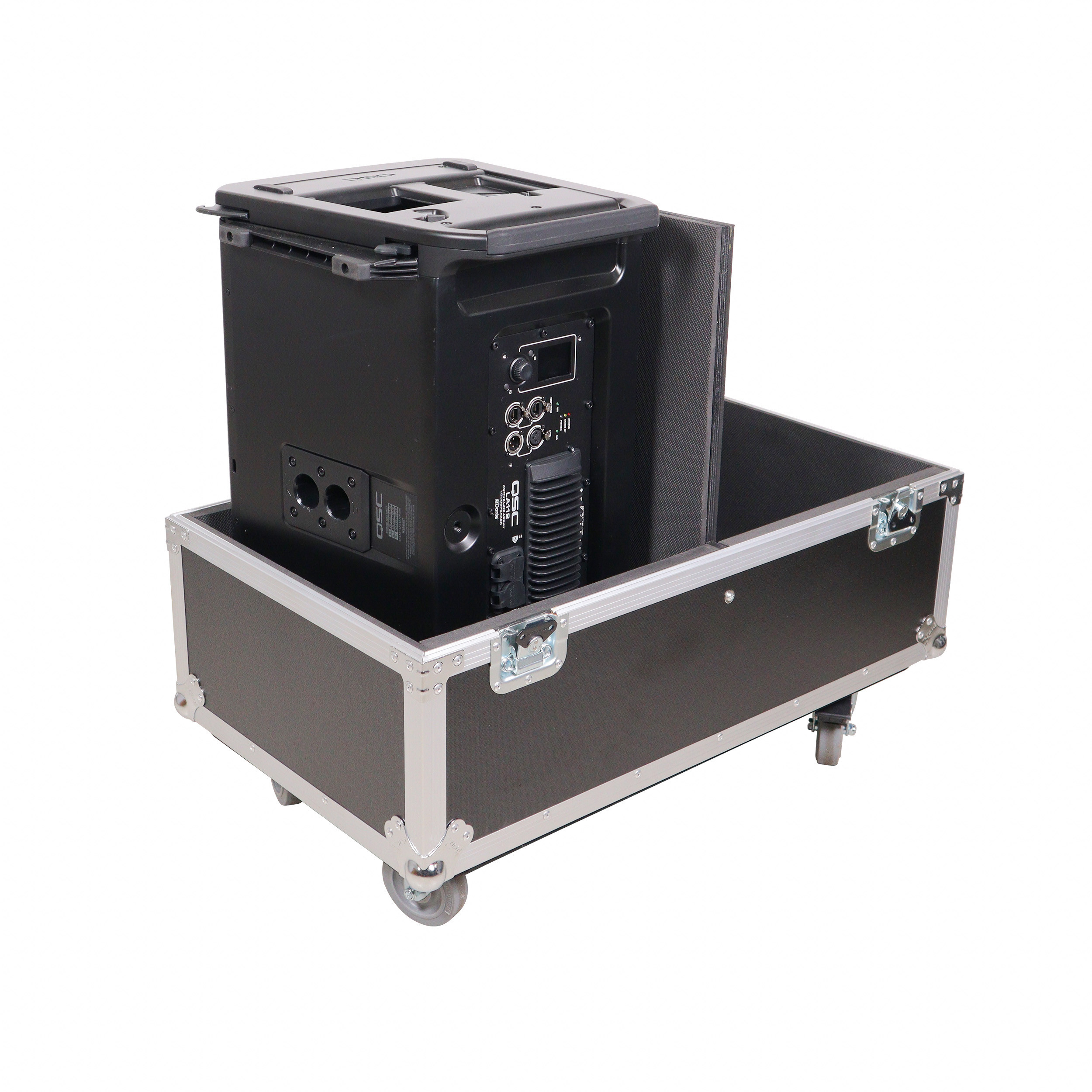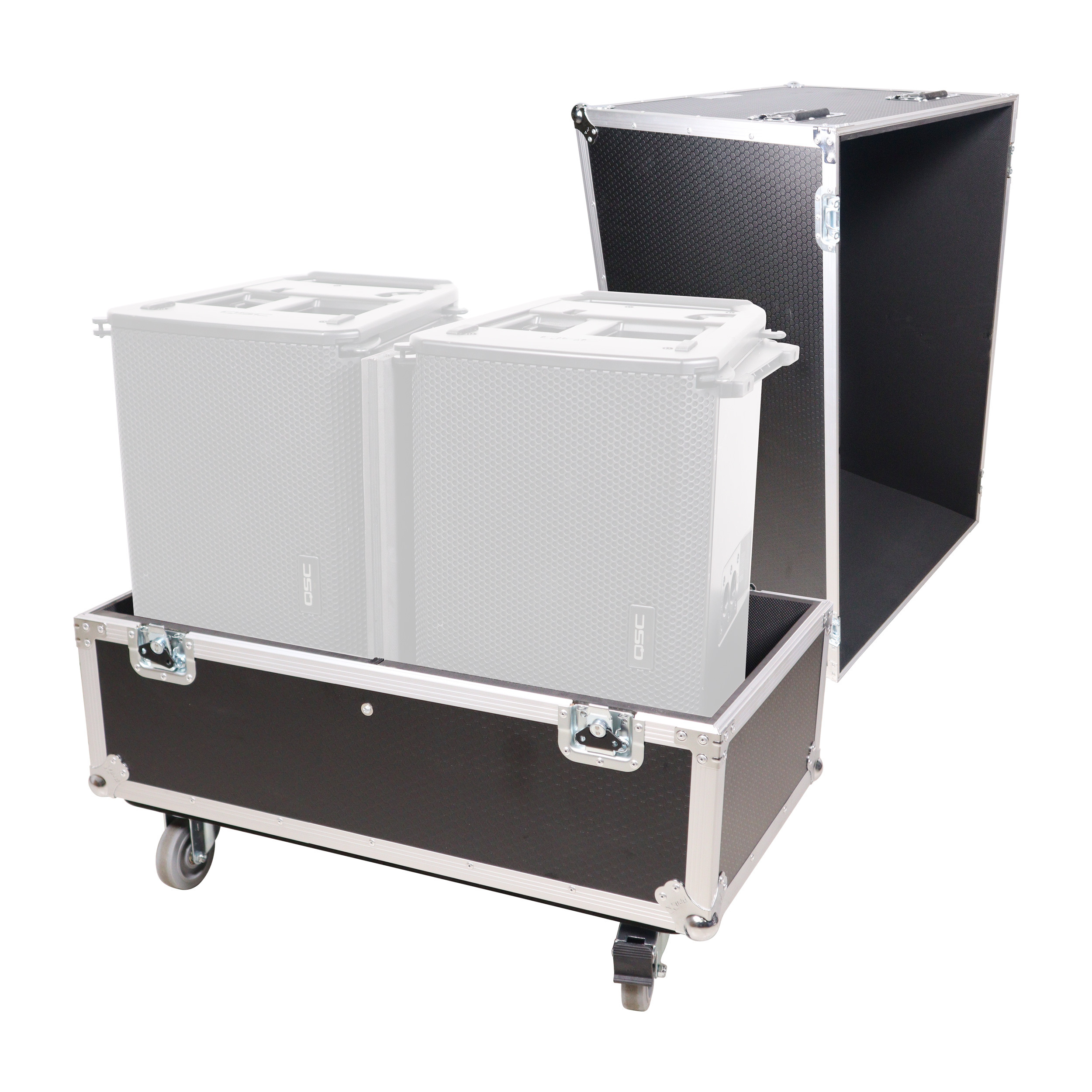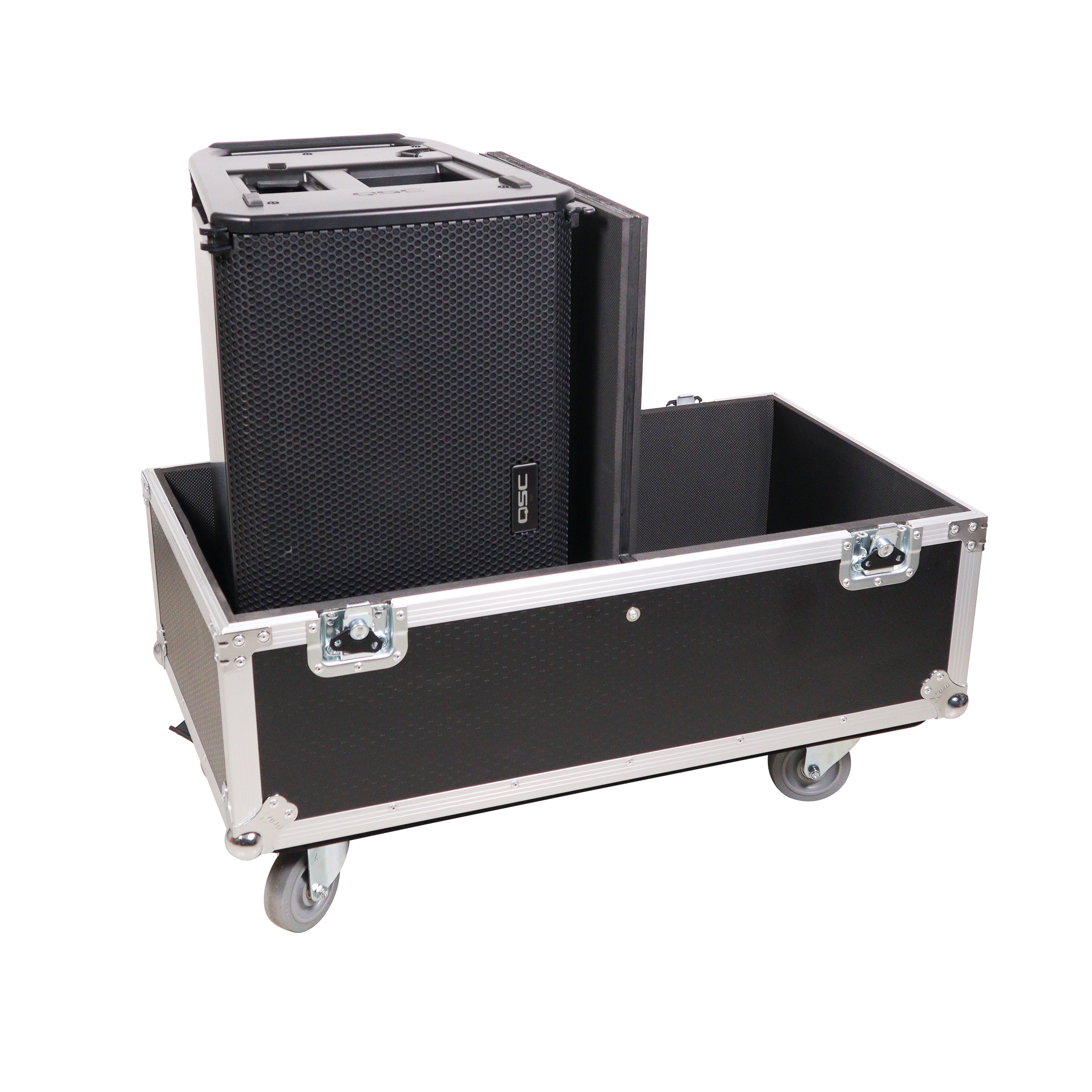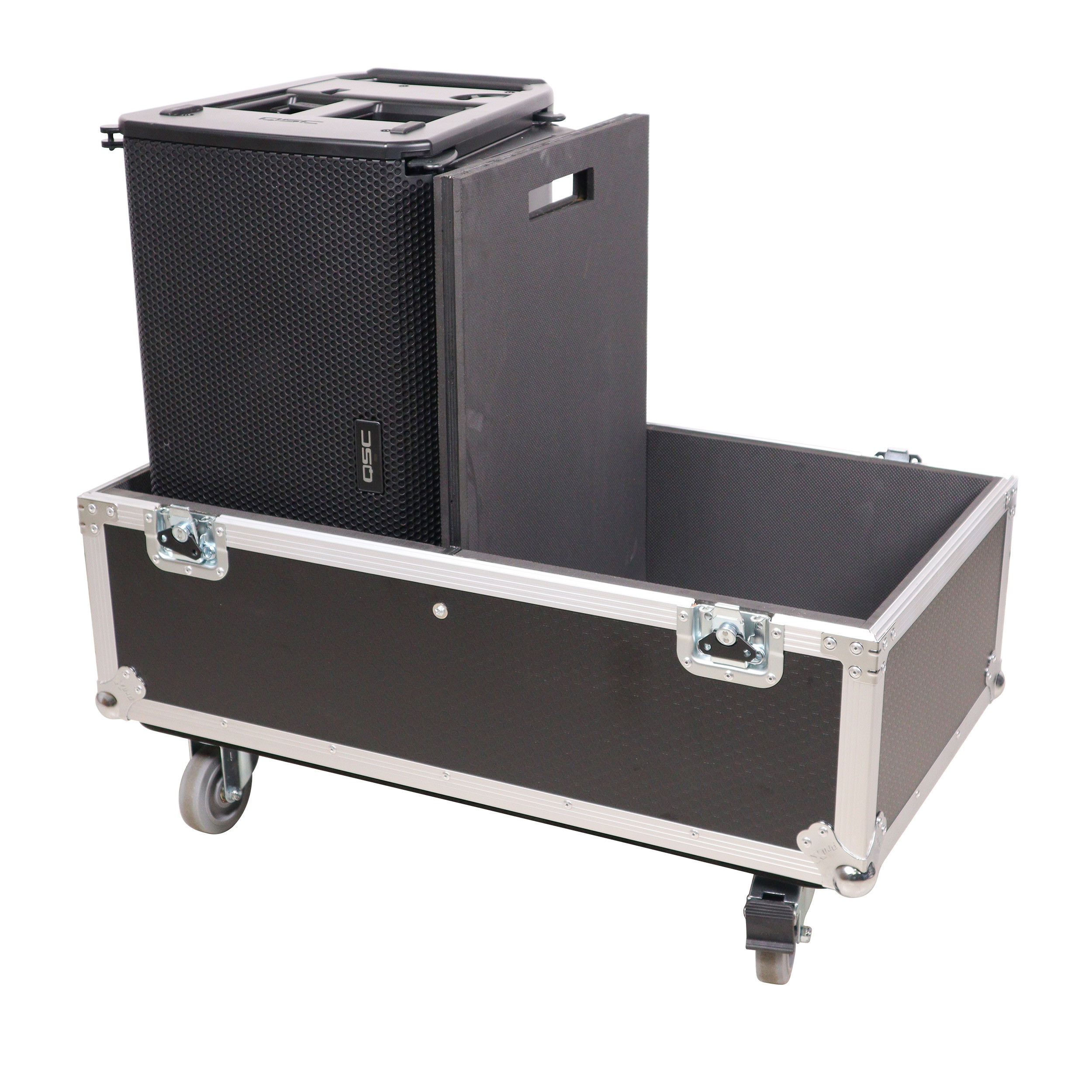 Equipped with four steel 4" casters (2-Locking), this case is easy to travel with and can be stacked with other flight cases using the caster dishes on top. It is ideal for AV production companies, touring bands, entertainment groups, mobile DJs, and anyone who owns line array speakers. ProX Cases are designed to safeguard your investment.