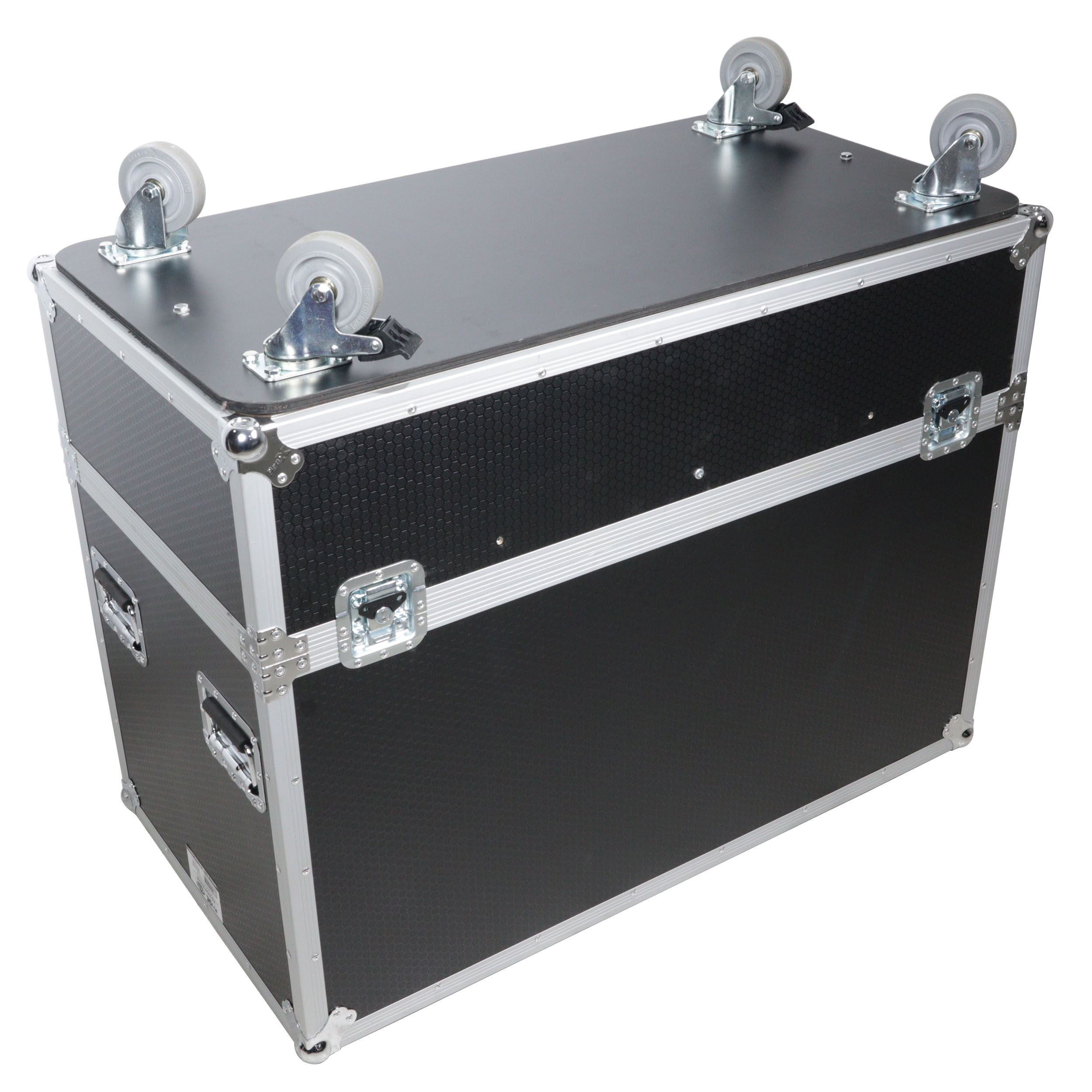 The ProX XS-2X282020W is the perfect case for AV production companies, touring bands, entertainment groups, and mobile DJs. This case rests on four 4" casters designed for easy traveling, it also comes equipped with caster dishes on top to facilitate stacking with other flight cases. Fits 2 pcs 28x20x20 inch speakers
