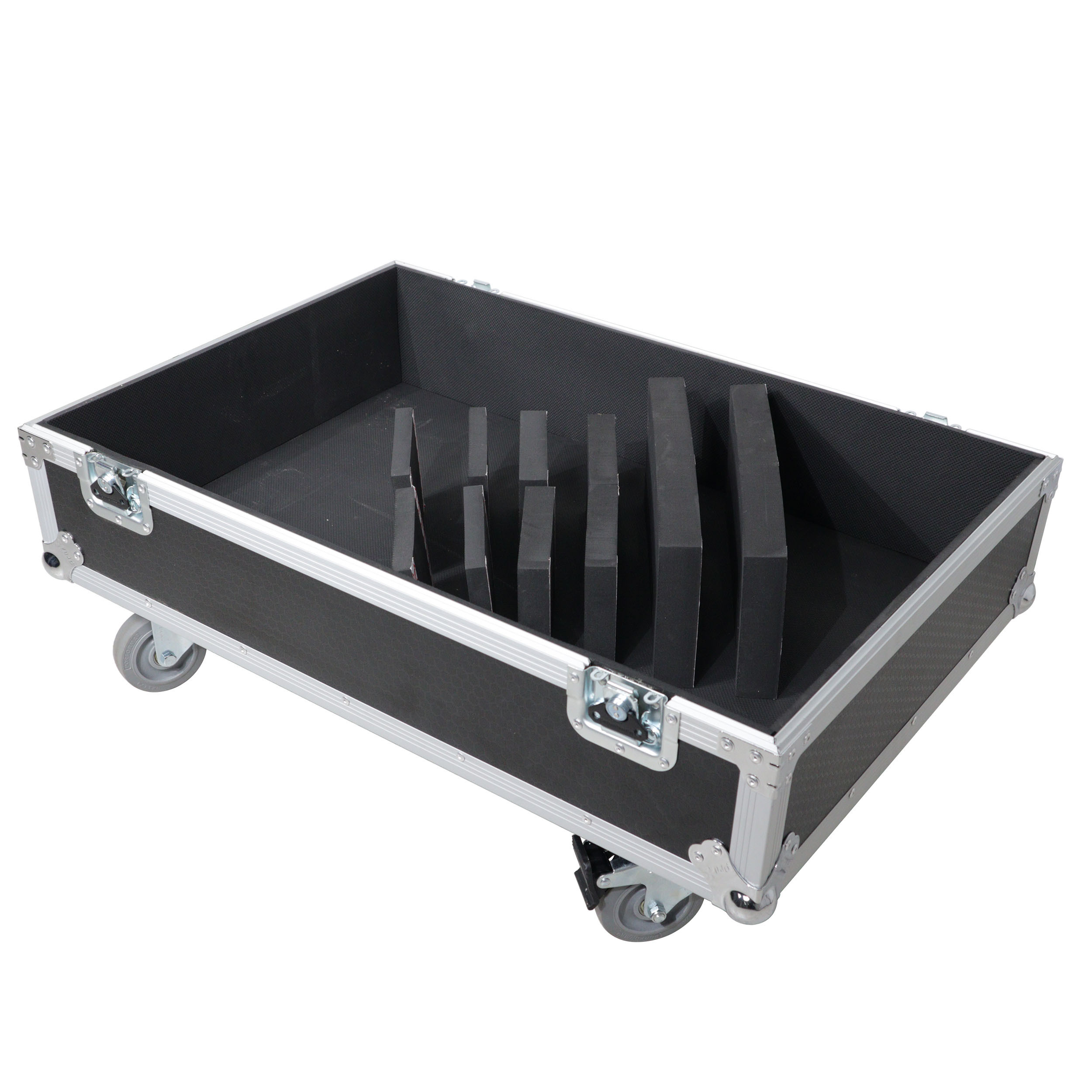 The ProX XS-322127SPW Universal Line Array Speaker Flight Case is the perfect case for AV production companies, touring bands, entertainment groups, and mobile DJs. This case rests on four 4" casters designed for easy traveling, it also comes equipped with caster dishes on top to facilitate stacking with other flight cases. Interior Dimensions: 32.00"L x 21.00"W x 27.00"H